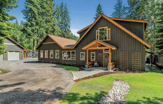 Furnished Mountain modern retreat offers a perfect blend of rustic charm & contemporary luxury. Set on 1.86 private acres w/access to trails & snowmobile routes perfect for recreation. The home boasts 3,294 square feet, 3 bedrooms, 2.5 baths, great room, wood burning fireplace & bonus loft area plus a detached 2-car garage w/office space. A cottage with 3/4 bath & laundry for extra guests. Amenities include wine fridge, stable & tack room, fencing for livestock, wired generator, auto sprinklers, Timber framed carport for extra car/tractor cover. Enjoy the outdoors & a covered patio, TV & seating, offering an inviting place to unwind in & enjoy all 4 seasons. Sold turnkey including snow blower. Minutes to Lake Wenatchee & Plain.