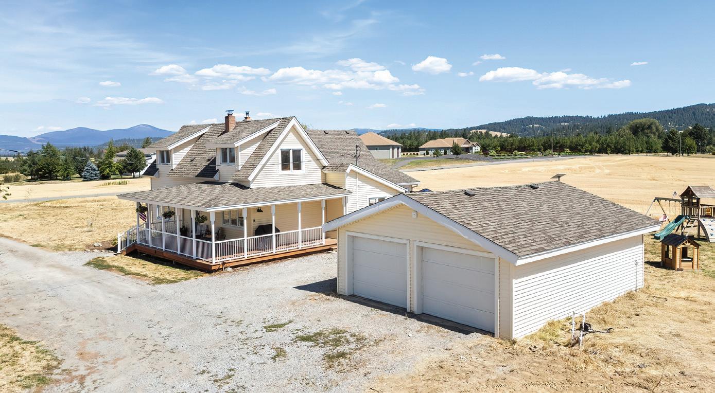 4 BEDS • 3 BATHS • 2,469 SQFT • 16.3 ACRES • $799,900 Charming farmhouse with breathtaking views, originally built in 1898 and fully updated in last few years throughout! This home offers 2, 500 square feet of living space featuring 4 bedrooms and 2 baths with main floor laundry. The kitchen has been completely renovated, boasting quartz countertops, new cabinets, and updated appliances and fixtures. Both bathrooms on the main floor are newly remodeled with quality finishes. Enjoy stunning views in every direction, showcasing Mt Spokane plus the beautiful surrounding foothills. The country-style wraparound porch is perfect for watching evening sunsets and seeing the abundant wildlife in the area. The living area features a new wood-burning fireplace, and the home is equipped with a forced-air electric heat furnace, as we central air conditioning. New flooring, interior paint throughout and all the rooms and closets are spacious the property includes a 30’ x 40’ machine shop with 20’ ceiling height, perfect for toys or RV Storage, plus a detached 2 car garage!