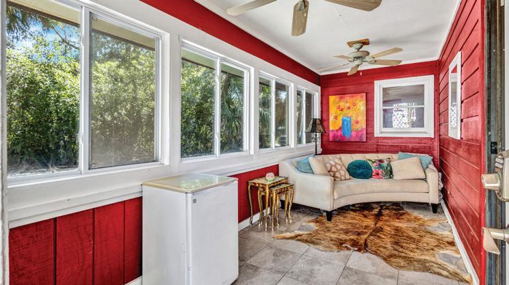 • Covered back porch overlooking fenced yard