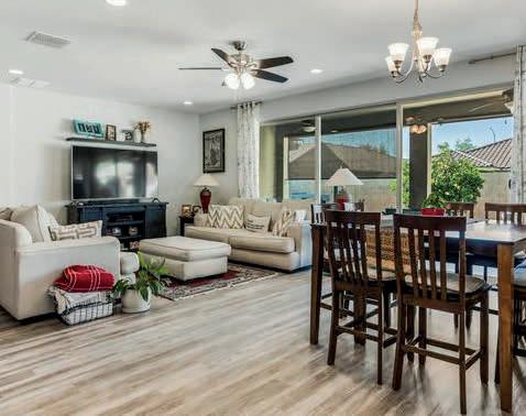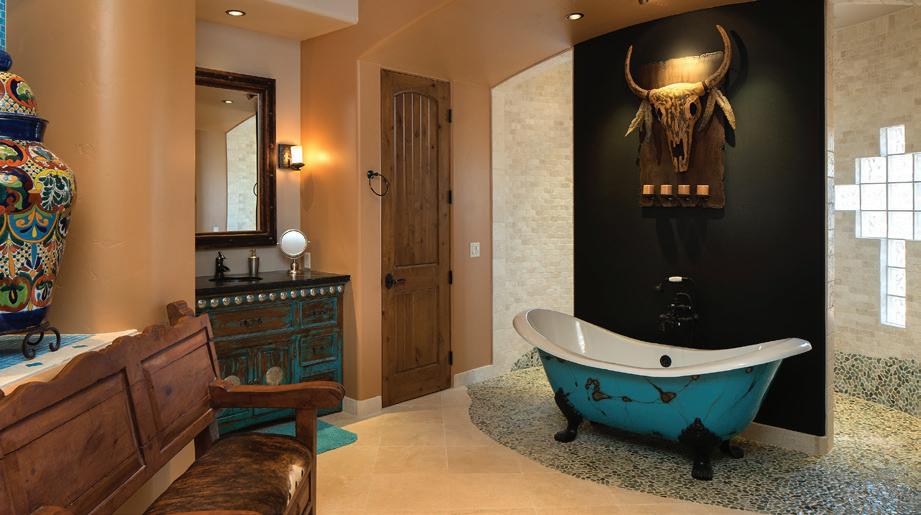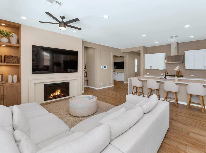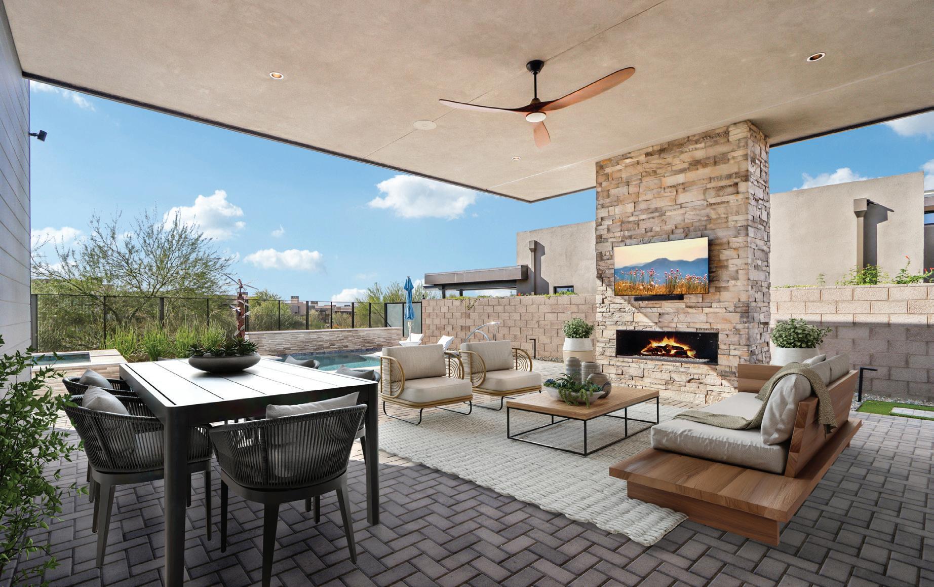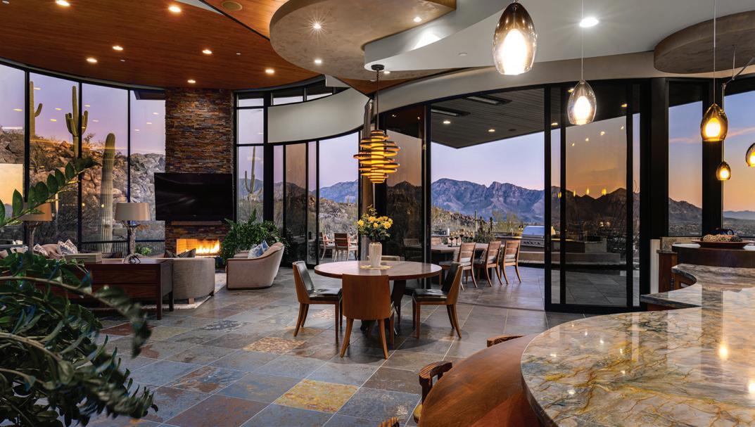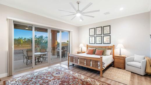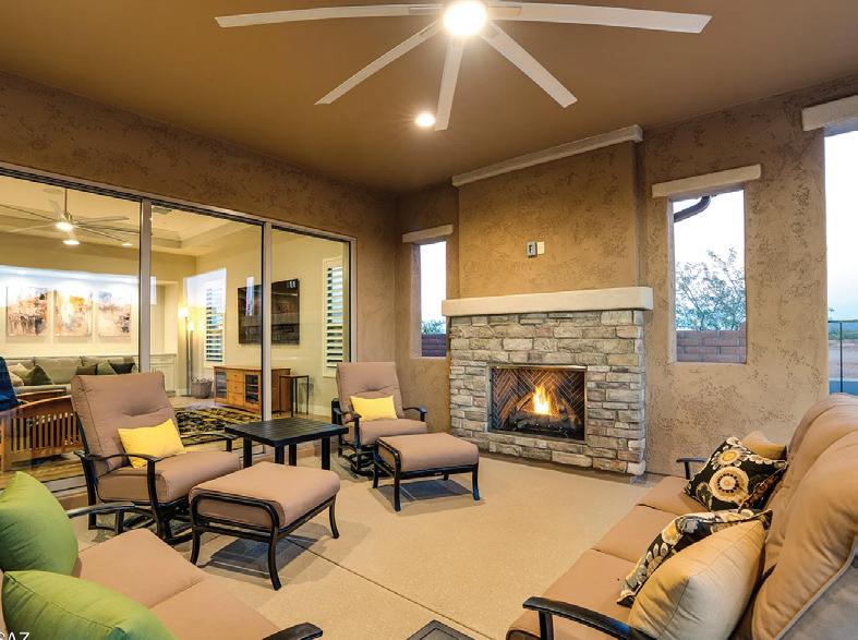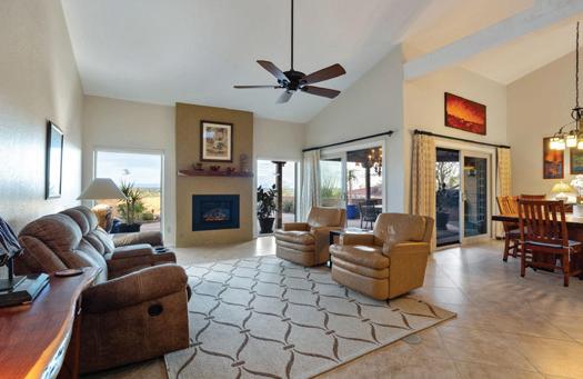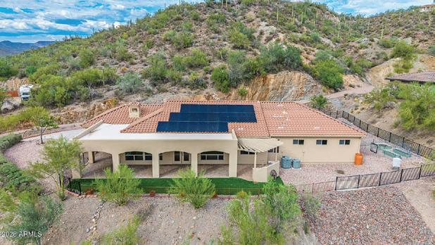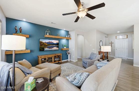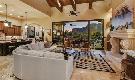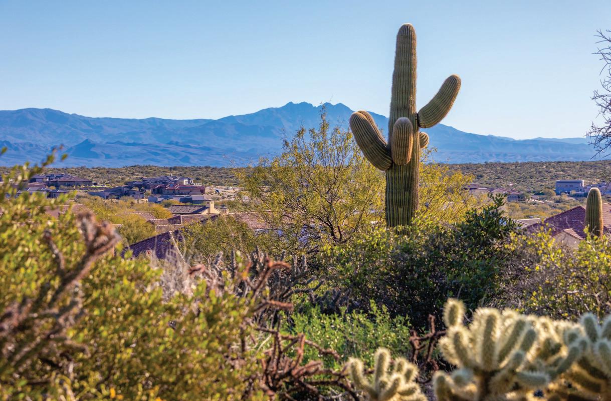 Spectacular Spanish Contemporary with Superstition Mountain views and protected open desert create a remarkable setting for this custom residence located within the prestigious Superstition Mountain Golf & Country Club. Built in 2017, this highly upgraded home borders Arizona State Trust Land and the Tonto National Forest, creating what feels like a private five-millionacre backyard protected by State Trust Land and grazing leases surrounding Sonoran Desert beauty. Thoughtfully designed to capture the dramatic scenery, the home features a 10-foot wall of glass that fills the great room with natural light and breathtaking views of the Superstition Mountains. Situated in a quiet village setting with no through traffic, the property also, borders community open space directly across the street, enhancing the sense privacy and openness.
