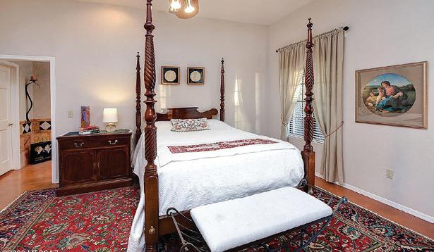 The detached casita offers two stories of comfortable guest accommodations, complete with its own fireplace and modern conveniences—ideal for visitors or extended stays.