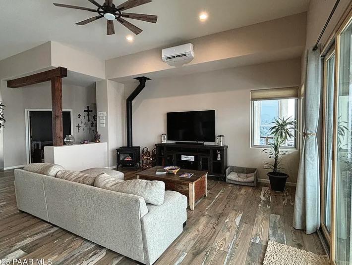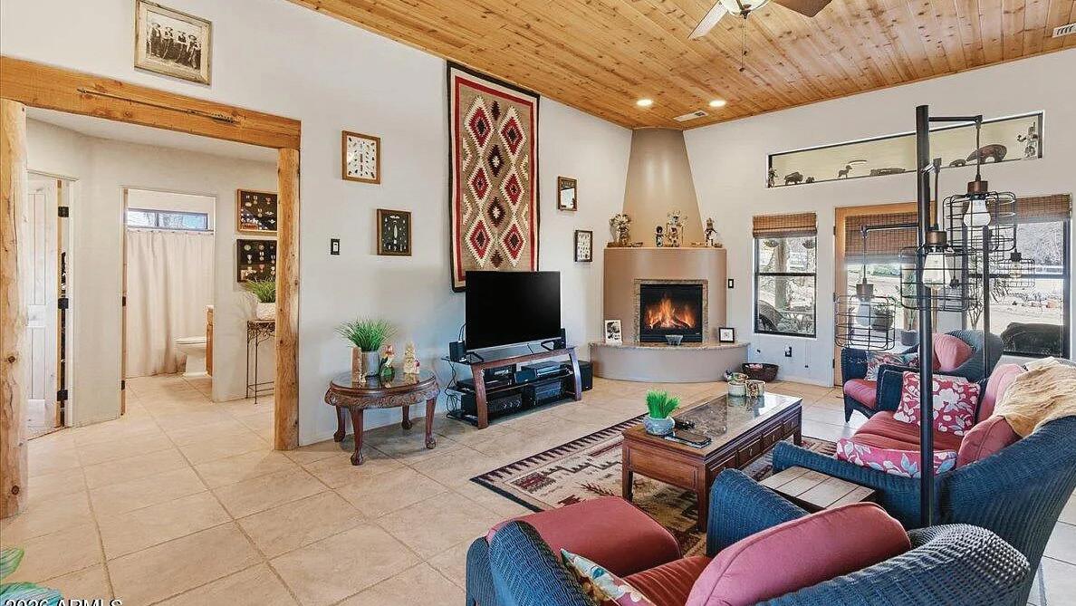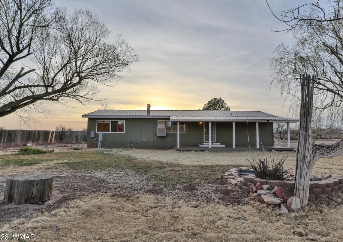Discover this beautifully remodeled 2,500 sq ft off-grid paradise in Vernon, AZ, set on 10.03 private, level, and tree & meadow-covered acres. Remodel completed in 2025, the residence offers 4 bedrooms and 3 bathrooms with modern updates throughout, blending comfort and functionality. This horse property is fully equipped with a 4-stall horse barn, making it ideal for equestrian use. Additional improvements include a new charming tiny house, a high-end professional greenhouse with an outdoor garden area, and a rare underground root cellar for storage and preservation. The fully-owned solar system is state-of-the-art. The gated entry ensures security and enhances the sense of privacy, while the peaceful setting among the trees and water feature provides a tranquil retreat. There are 2 wells on the property, but only 1 is being used. The exterior siding covers the vertical log work that makes up the exterior walls - highly insulated and most likely bulletproof. While the solar system maintains the home, it’s also connected to Navopache Electric.