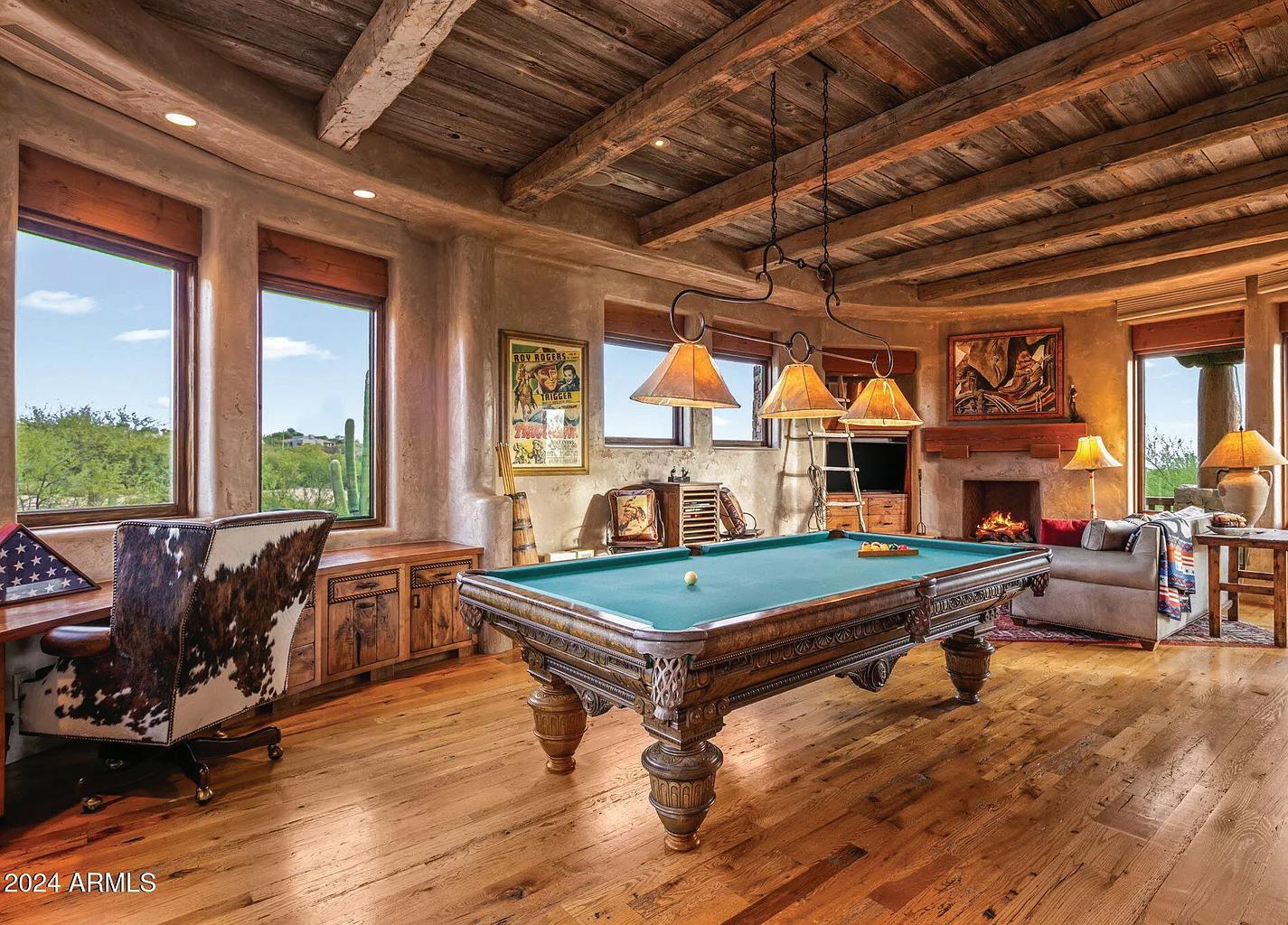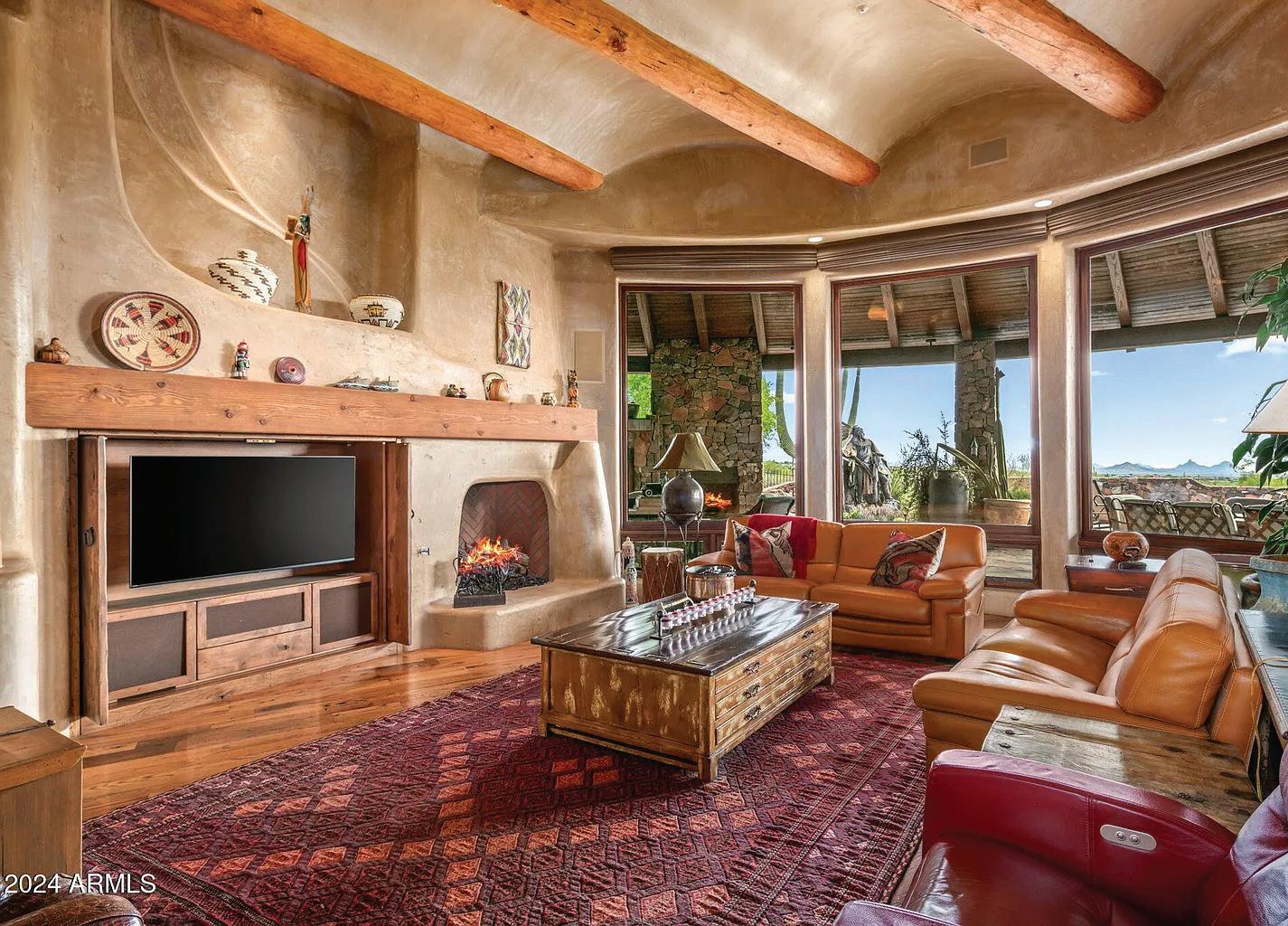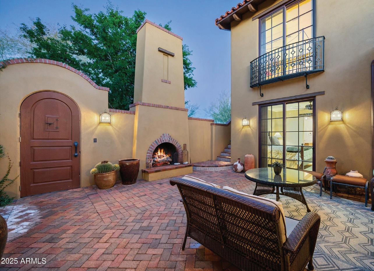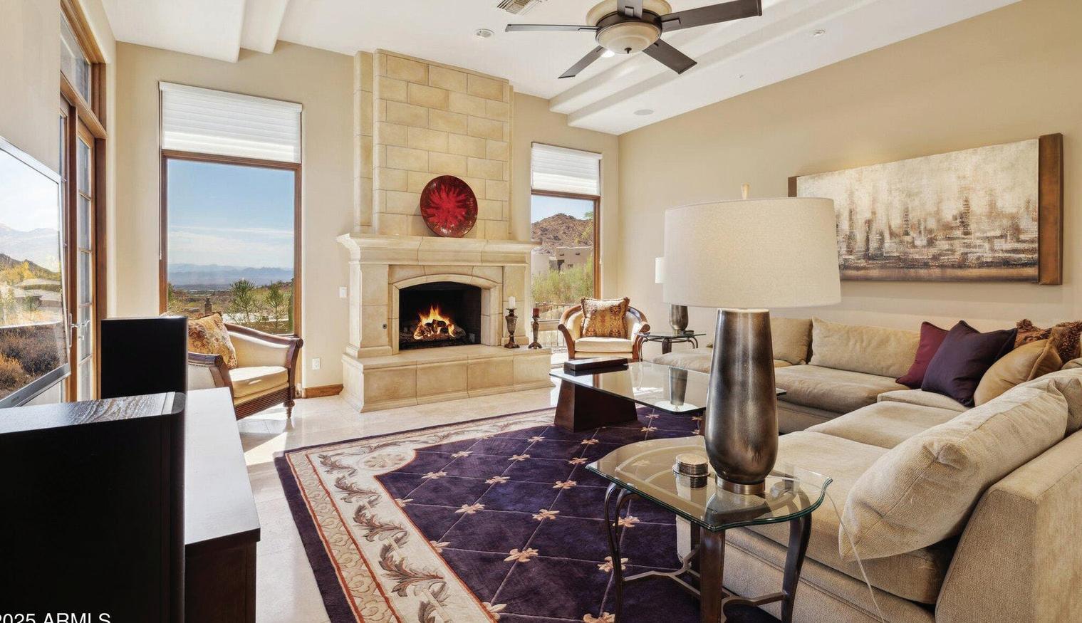 Desert Mountain Golf Membership is available. This exceptional west-facing residence features a welcoming courtyard entry compl ete with an outdoor fireplace and water feature. The grand great room showcases impressive, beamed ceiling details and offers an ideal space for entertaining. The gourmet kitchen is equipped with granite countertops, elegant tile backsplash, an oversized island, premium Viking appliances, and a walk-in pantry. The spacious primary suite includes a fireplace, access to the patio with a hot tub, dual sin ks in the primary bath, a separate tub and shower, and a generous walk-in closet. There is a separate outdoor entrance to the upstairs guest casi ta, which overlooks the front entry. Offered Turnkey with few exceptions. www.TourFactory.com/3232522