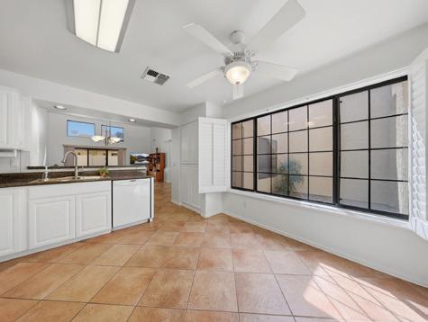 Garage conversion to oversized den/fam. rm. w/attractive bay window seat. Laundry area w/washer & dryer. Bright & inviting sunroom provides wall-to-wall storage. Yard is carefree & private w/fantastic views & covered patio. This lovely home offers tranquility, comfort & versatile living.