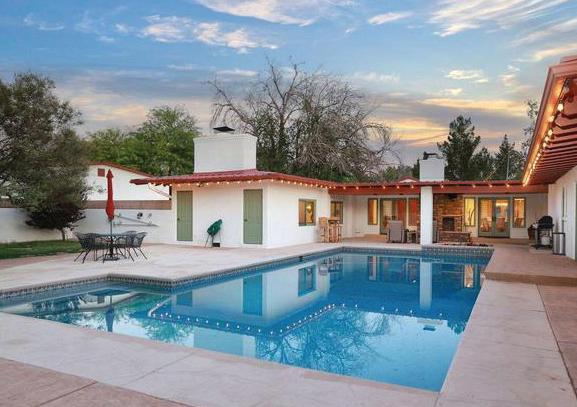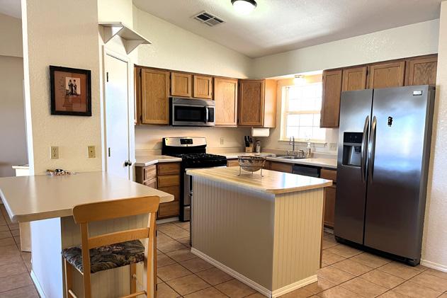 The 5,031 sq ft masonry home blends Southwestern elegance with comfort, featuring five bedrooms and four baths. A chef’s kitchen with a large island anchors the living spaces, while three fireplaces add warmth and character. Multiple patios capture stunning mountain views, complemented by a resort-style pool and spa for year-round enjoyment.