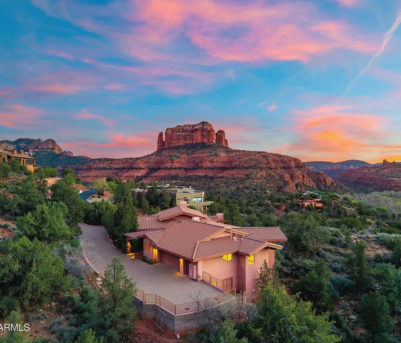 0.92 ACRE LOT This 2,531 sq. ft., 3 bedroom, 2.5 Bathroom remodeled home in Sedona is situated on a nearly one-acre lot (0.92 acres) and is designed to maximize its panoramic Red Rock and Mesa views. Its open, light-filled layout and proximity to Sedona’s natural landmarks, hiking, biking trails make it a versatile choice as a primary residence, a dedicated second home, or a turnkey investment property. The home features 10-foot sliding glass doors that act as a frame for the surrounding landscape, integrating the outdoors into the main living space. An open-concept kitchen includes a large breakfast bar and a dining area equipped with a 10-seater table, ideal for hosting large groups. The property boasts multiple paver patios designed for entertaining. The primary bedroom features its own private patio with a nearby hot tub that offers both privacy and unobstructed views. A 3-car garage is included, with one bay reserved specifically for owner storage, a valuable feature for those using the property as a short-term rental. The home can be sold fully furnished, allowing for an immediate transition into a vacation rental or second home. A professional proforma from Sedona.org is available to provide detailed rental income projections and ROI analysis for prospective investors. Properties in Sedona with direct Red Rock views and significant acreage are considered high-demand assets in the local real estate market. Sedona is renowned as an international Dark Sky Community, making the home’s outdoor patios and hot tub perfect for stargazing. Easy access to I-17. Call for details.