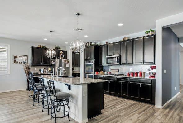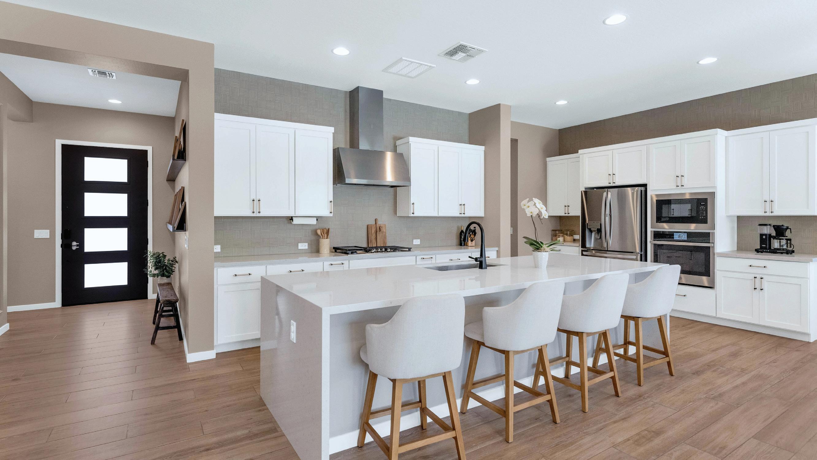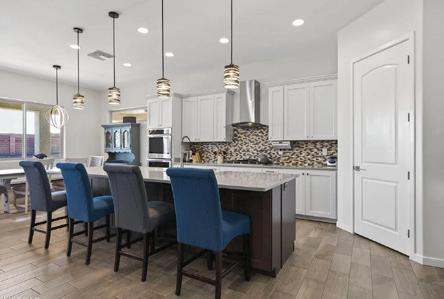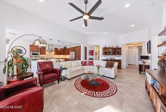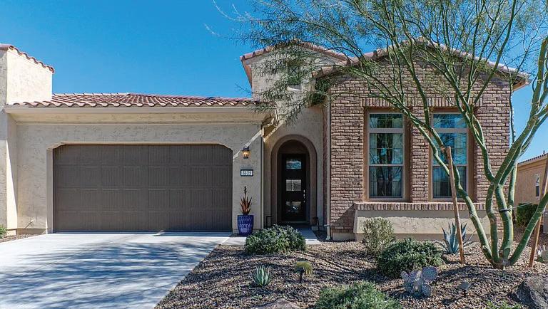 This exceptional 2024 residence offers 3 bedrooms, 2.5 baths, and 2,968 SF of thoughtfully curated living in Quail Creek, one of southern Arizona’s premier active adult communities. Designed with a refined neutral palette and elevated finishes, the home features two private en-suite bedrooms, an expansive den, and a separate executive-style office. A stacked-stone façade and dramatic glass entry set the tone for an elegant interior with an open great room, recessed ceilings, walls of glass, wide-plank luxury vinyl flooring throughout, and a custom surround-sound entertainment system. The chef’s kitchen showcases a large island, induction cooktop, Bosch refrigerator, built-in ovens, quartz countertops, designer tile backsplash, and a walk-through butler’s pantry leading to an oversized walk-in pantry. The primary suite offers patio access, spa-inspired bath, and custom walk-in closet, while the guest suite provides equal comfort and privacy. Additional highlights include crown molding, plantation shutters, integrated speakers, water softener, reverse-osmosis filtration, a well-equipped laundry room, and an exceptional insulated three-car garage with mini-split HVAC, custom storage, epoxy floors, and a built-in workbench. A south-facing patio with fireplace completes the home, while residents enjoy Quail Creek’s resort-style amenities, including golf, pools, racquet sports, dining, trails, and a vibrant social lifestyle.