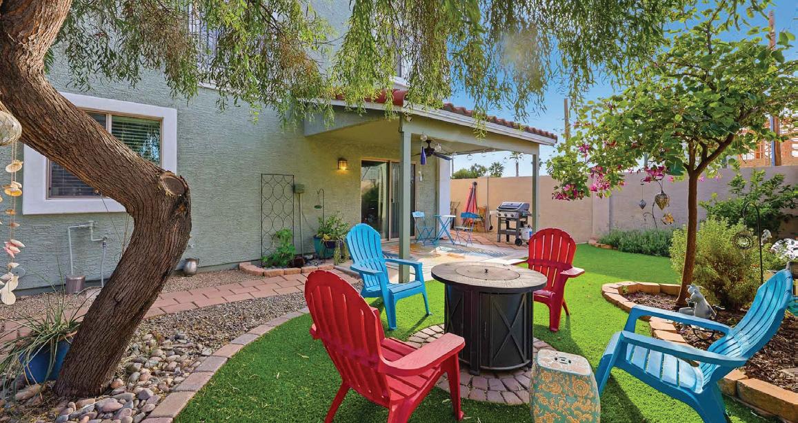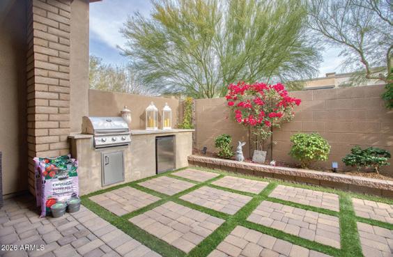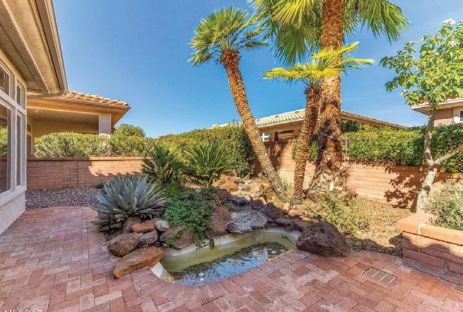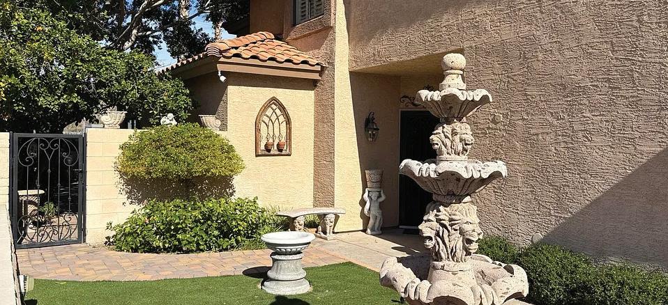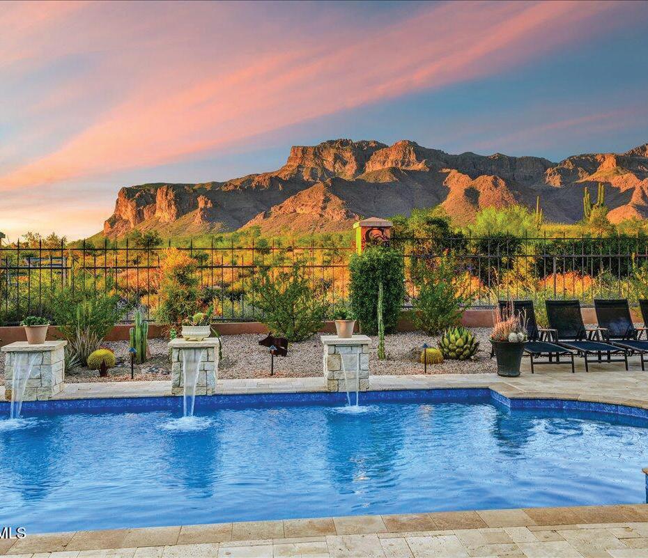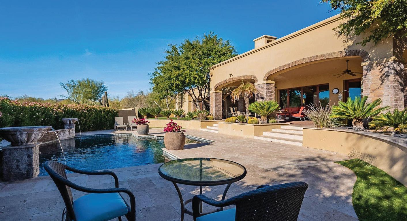 Step outside to a private backyard retreat—perfect for entertaining—where a tranquil fountain sets the tone for relaxation as you take in breathtaking desert sunrises and sunsets.