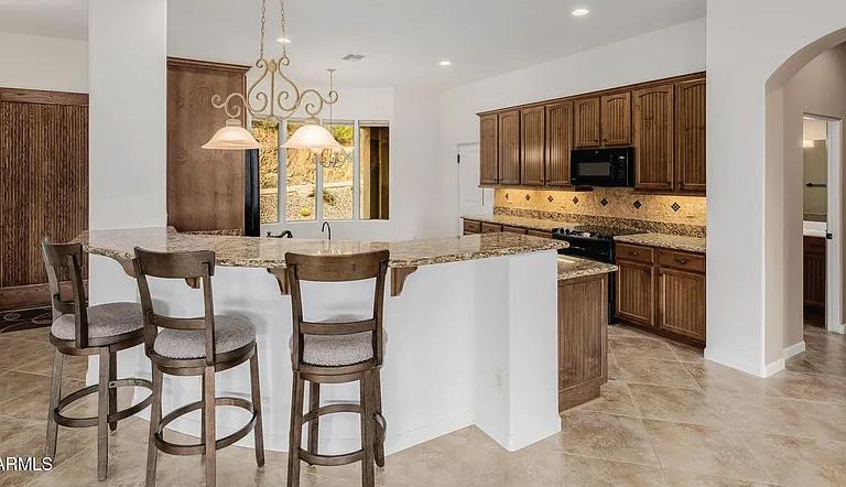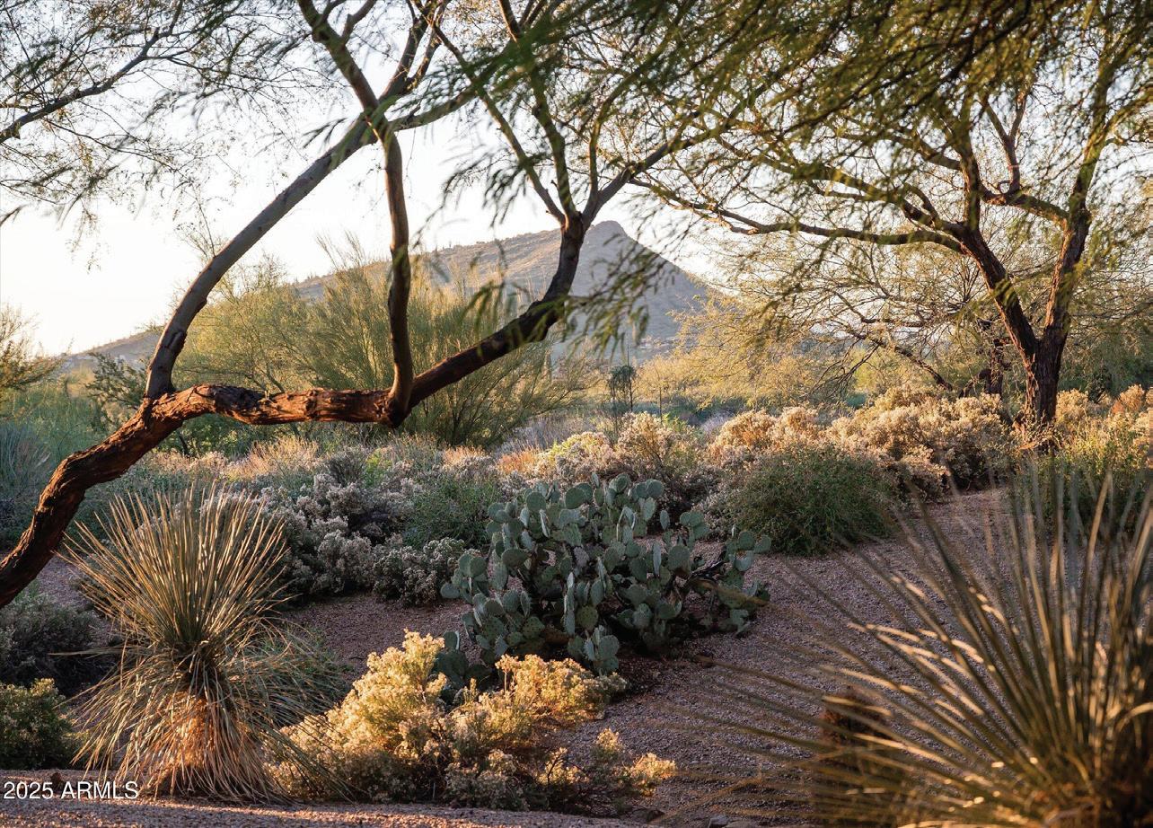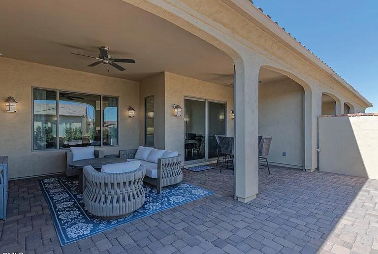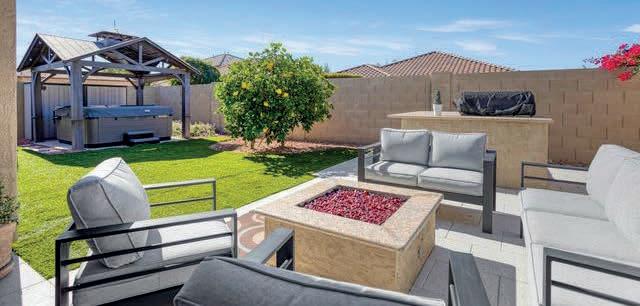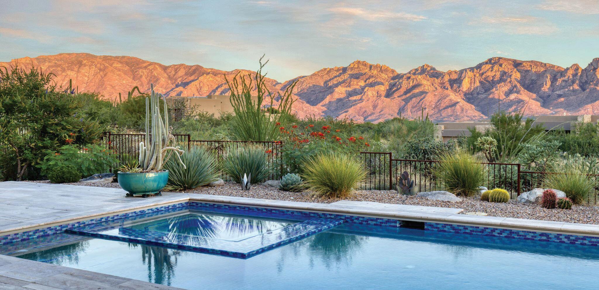 Step outside to a private backyard retreat—perfect for entertaining—where a tranquil fountain sets the tone for relaxation as you take in breathtaking desert sunrises and sunsets.
