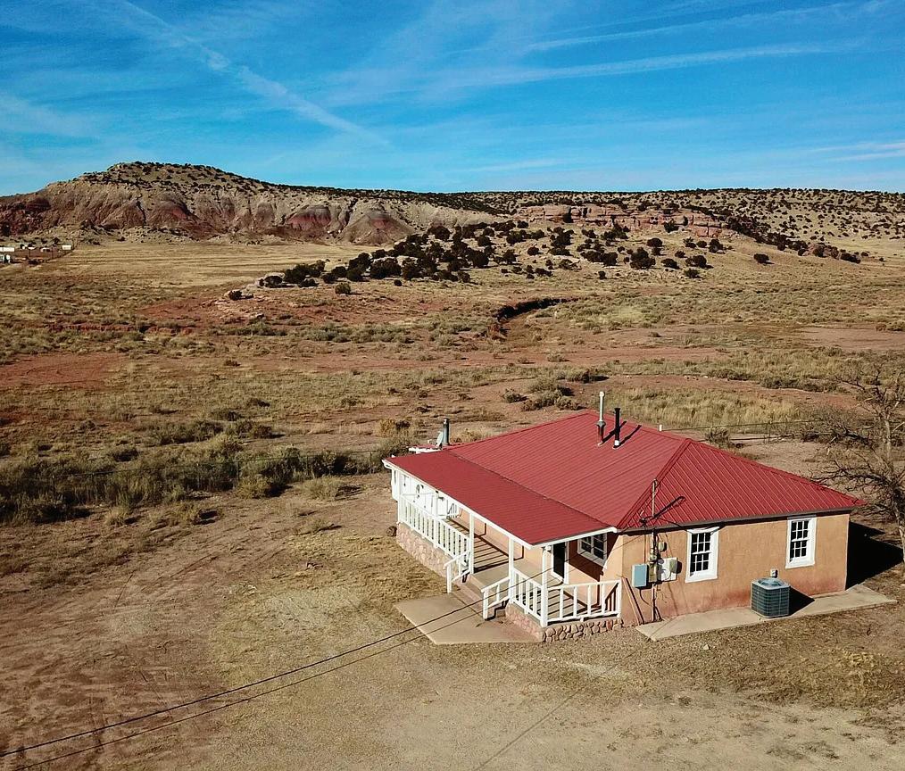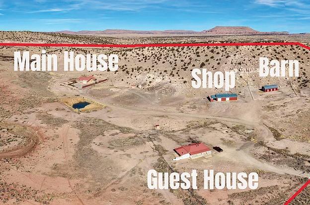 Experience the beauty of western New Mexico on this remarkable property near town, offering tranquility, sweeping vistas, and authentic Southwest charm. The main home features four bedrooms, three-and-a-half baths, and an open layout designed for comfortable living and entertaining. A separate guest house provides additional flexibility for visitors, extended family, or potential rental income. Dramatic mesas with exposed rock outcroppings overlook gently sloping grasslands filled with native grasses, juniper, and piñon pine, creating a picturesque high desert landscape. Outdoor amenities include private walking trails, scenic benches, a spacious shop, storage containers, and a classic red barn with corrals ideal for horses or livestock. The property supports homesteading, recreation, or peaceful country living. Nearby attractions include El Malpais National Monument, Bluewater Lake State Park, and Cibola National Forest, offering year-round hiking, fishing, and exploration. Grants provides essential services, while Albuquerque and its international airport sit about eighty miles away. Enjoy sunny skies, wide-open space, and unforgettable sunsets.