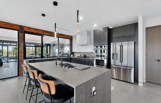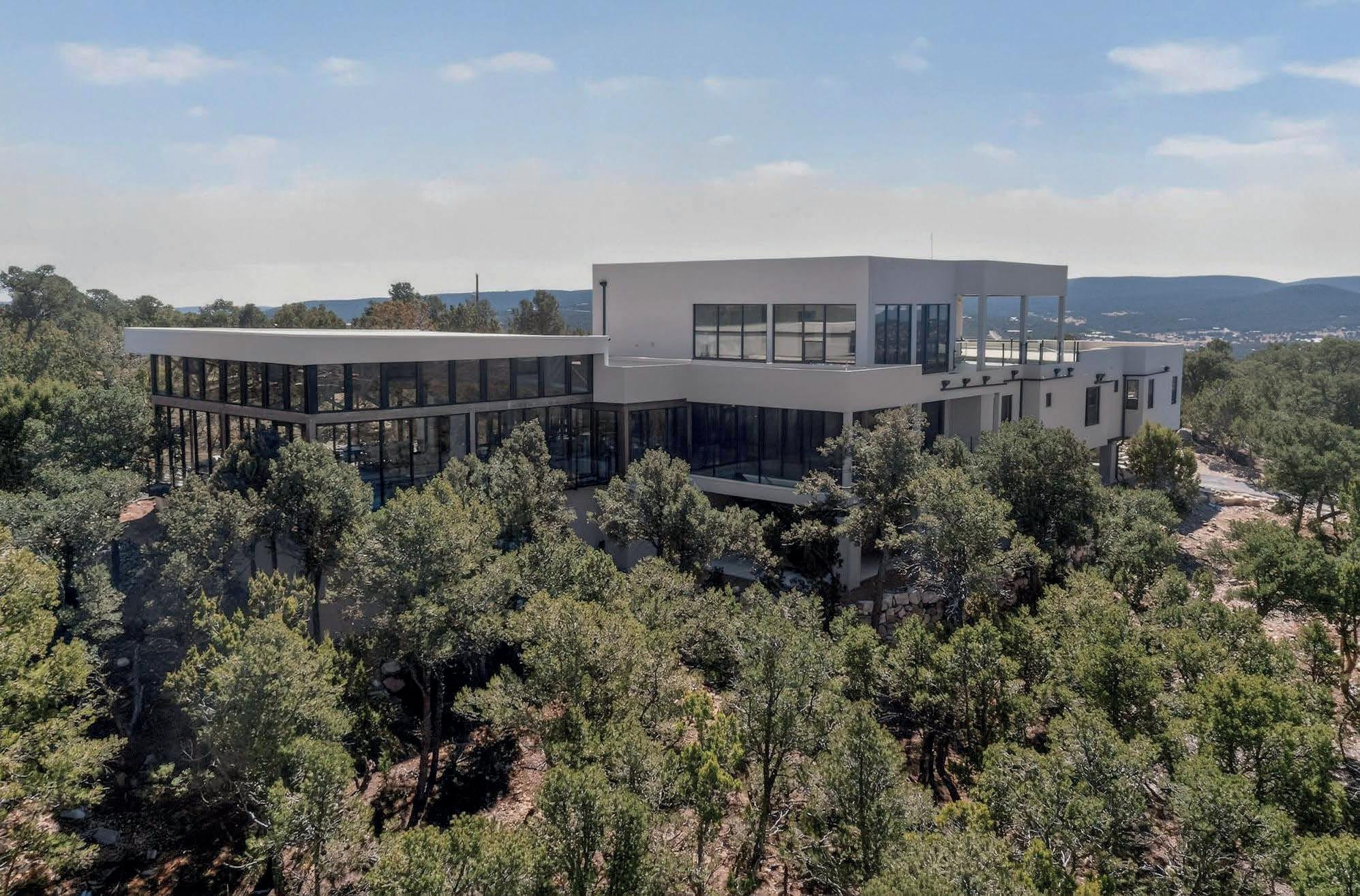 Perched among the treetops, this newly built custom contemporary estate offers 9,157 sq ft of refined modern living. Designed with clean lines and expansive walls of glass, the home seamlessly blends indoor and outdoor spaces. The residence features 5 bedrooms, each with a private ensuite bath, plus a dedicated office and home gym. The stunning primary suite is surrounded by floor-to-ceiling windows and includes a spacious spa-like bath with sauna and kitchenette. Designed for both everyday living and grand entertaining, the home offers two fully equipped kitchens, a main kitchen with large island and walk-in pantry, and a separate industrial chef’s kitchen with stainless steel counters and cabinetry. The open living room is anchored by an electric fireplace.