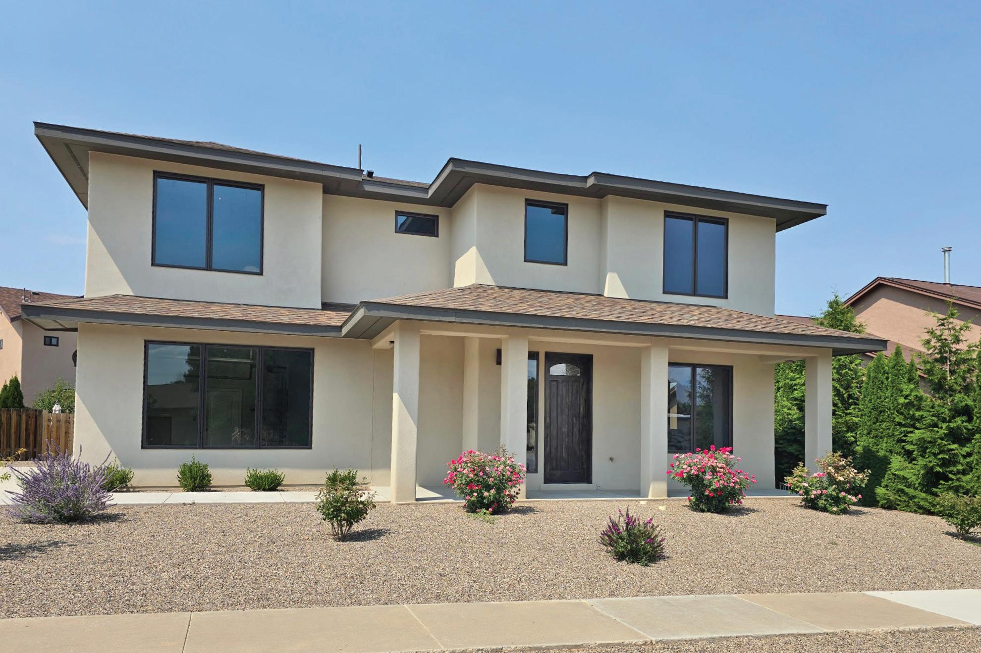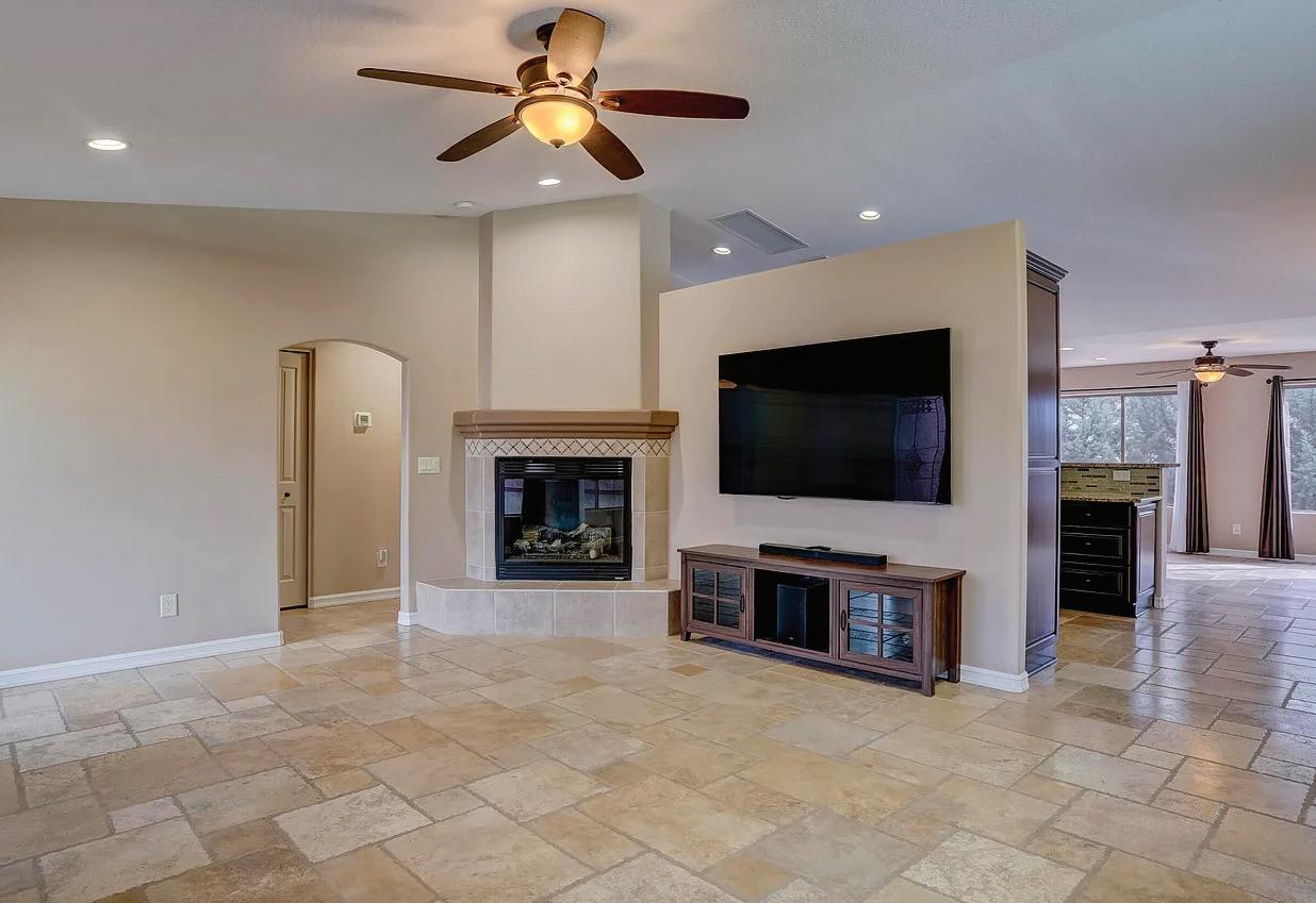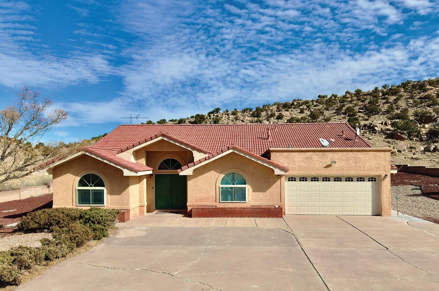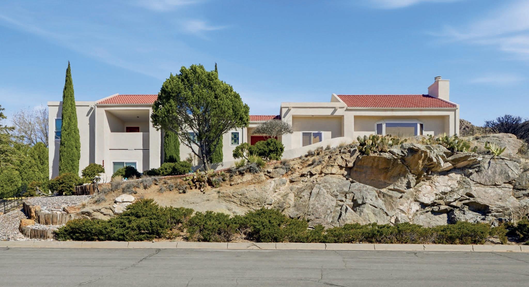 Nestled in the Sandia Foothills 1 block from Open Space, hiking, biking & sitting high above the city, this Custom Home has been meticulously maintained by the original owners. Breathtaking Western Sunsets & City Lights. The highly sought after Foothills location is close to Sandia Labs, Kirtland AFB & easy access to I 40. This split-level home offers bright light in every room, a spacious kitchen with granite countertops, custom cabinetry, & an induction rangetop for gourmet cooking. The open space concept incorporates the kitchen, dining, and family rooms, complete with a beautiful fireplace & full wet bar, ideal for family gatherings & entertaining. The large primary suite offers total privacy & serenity. Upgrades include Windows, TPO Roof, Skylights, Updated heating system & more.