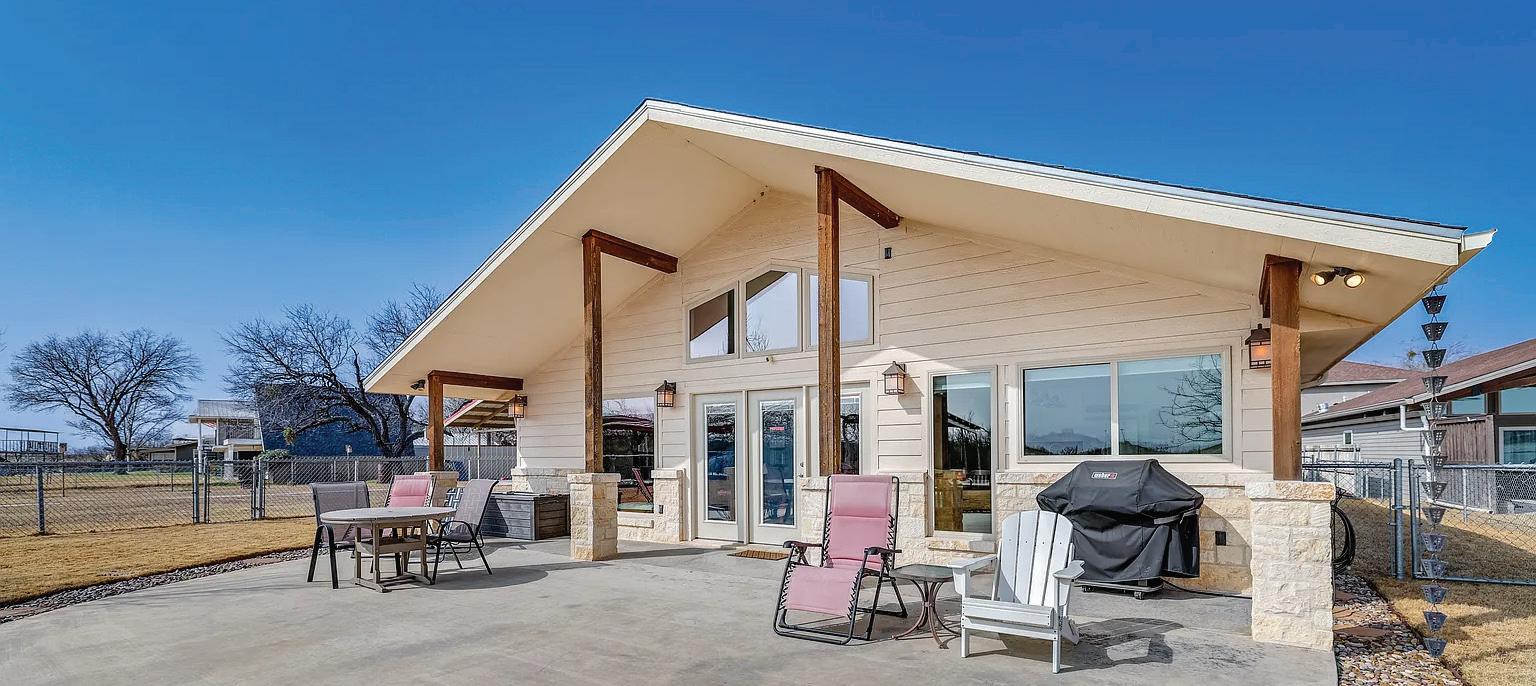 Discover your dream country estate on 48.84 acres of stunning Texas land, where modern luxury meets authentic ranch living. This beautifully updated 4-bedroom, 4-bath home features a bright open layout with soaring ceilings and a dramatic floor-to-ceiling rock fireplace as its centerpiece. Two flexible office spaces and a large climate-controlled sunroom offer versatility and panoramic views of the property. Designed for true ranch functionality, the property includes a full roping arena, an 8-stall barn with runs, a tack room, and two oversized storage buildings for equipment and livestock. A new covered back porch and privacy fence create the perfect outdoor setting, overlooking a peaceful pond. Thoughtfully renovated throughout, this home blends comfort, style, and western charm. Ideal for entertaining, working the land, or enjoying wide-open spaces, this turnkey ranch offers a rare opportunity to live the Texas lifestyle.