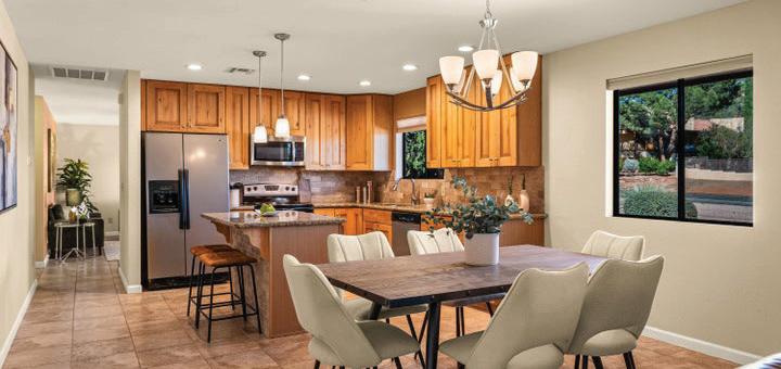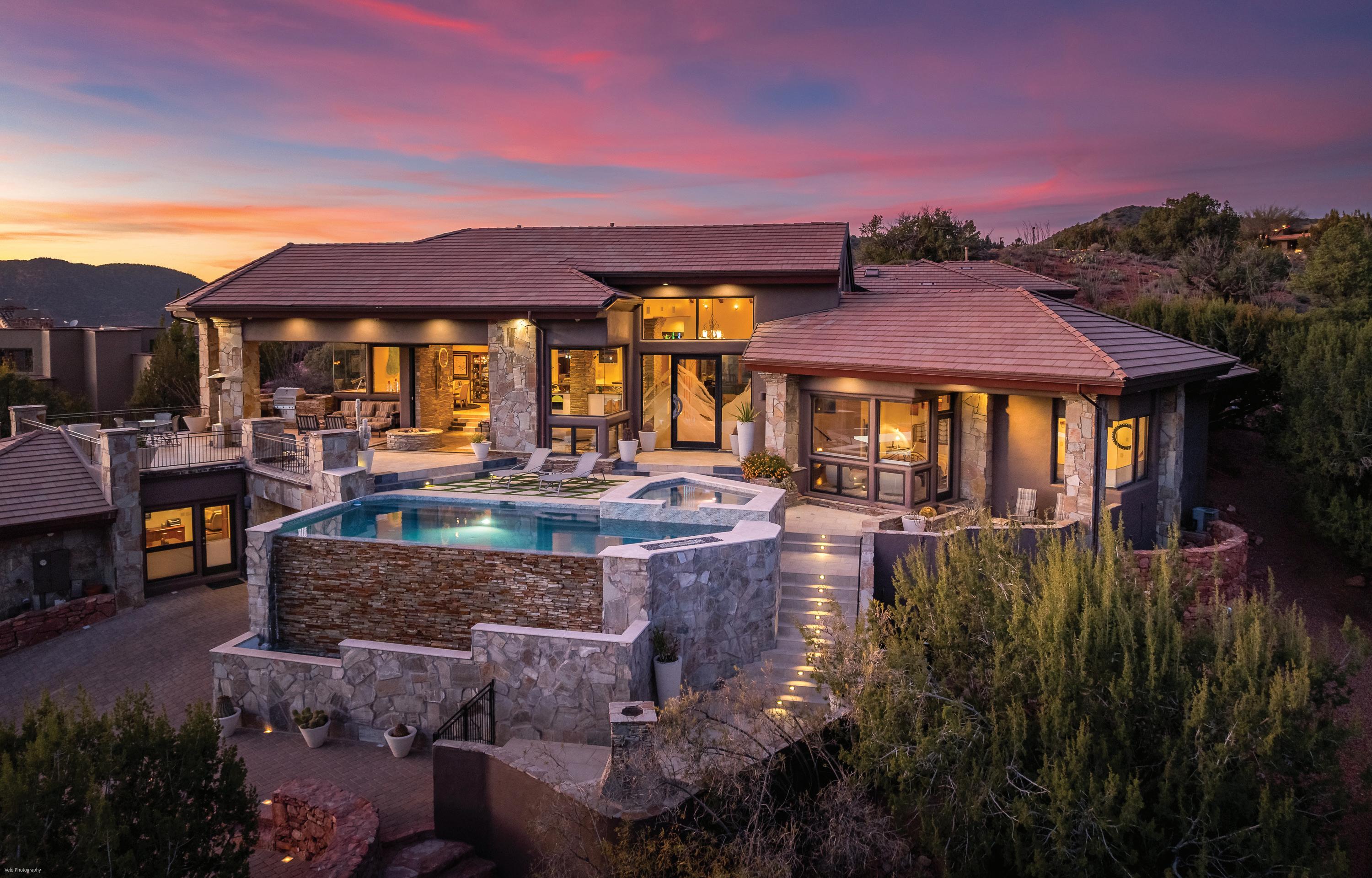 Modern Elevated Luxury in Prestigious Gated Foothills South. Elegantly updated home with a spacious 3,189 SF | 3BR + office | dual kitchens | multigenerational living nestled on a private, nearly half-acre parcel in the coveted community of Foothills South, this West Sedona gem offers a blend of seclusion and splendor that is rare to find.
