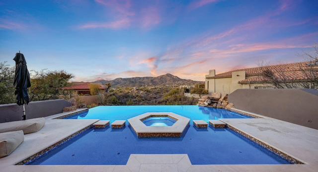 New custom coming in Troon Mountain Estates! This gorgeous, soft contemporary home to-be-built has approximately 4,113 sq ft, 4 bedrooms, 4.5 baths, including a 679 sq ft, one bedroom/one bath separate casita, plus an open kitchen with butler’s pantry, a great room, game room/den and walls of glass overlooking spectacular views of the McDowells, 4 Peaks and city lights from the top of a 20,000+ sq ft lot in gated Troon Mountain Estates. The main house is all on one level/no stairs, including the 3-car garage, ex cept for steps down to the casita, infinity pool and spa.