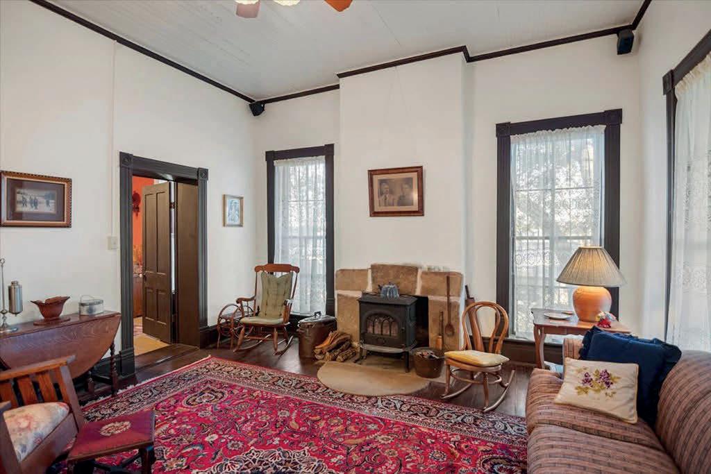 1899 hand cut sandstone, known locally as the “LEMBURG HOME”. Situated on 1.02 shaded acre estate located just off Mason Town square. Built by German architect R Grosse who also constructed the local tourist landmark, Seaquist Home. The original home consisted of three rooms—a bedroom, kitchen, parlor and a basement. Master bedroom, walk-in closet and master bath were added later. The entire structure is covered by a standing seam metal roof installed by Nixon Roofing out of Fredericksburg. Front and rear porches. Azak front porch flooring minimizes weather issues. Main residence consists of two bedrooms and two baths, CA/CH serviced by 72 Degrees out of Fredericksburg. Pine wood floors. High beaded ceilings, fireplace with insert, commercial kitchen oven. The 864 sq ft New Mexico territorial style guest quarters is a L-shaped earth ram structure with metal roof and stairway to attic. Consists of bath, kitchenette, bedroom/living room combo, CA/CH. 200 sq ft workshop, detached “Texas” 2-car carport, fenced garden area to keep the deer at bay, and additionally, a keyhole garden design—a circular or U shaped raised bed with central compost basket. Sandstone tank house and windmill. Home electric costs are mitigated by solar panels on roof of old garage/workshop. Large basement with out side entry serves as wine cellar/exercise room and additional storage. City water/sewer.