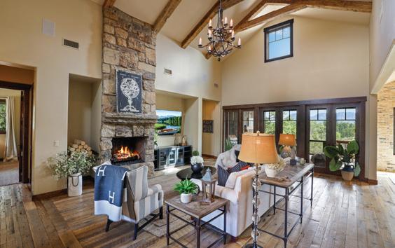 4 BEDS / 4.5 BATHS / 4,580 SF QT | $3,850,000 . Rustic elegance perfectly situated with panoramic golf course views of the 15th hole. This 4,580 sq ft home pairs timeless character with modern comfort. The luxury home builder built this home for himself! Therefore, close attention was given to quality and details throughout! The 100-year-old oak barnwood exterior and exposed beams create warm, historic charm that flows into finely detailed interiors. Four bedrooms plus a bonus room and a private office provide flexible living space for family and work. Custom appointments elevate every space: a chef’s kitchen with premium finishes, spectacular bar, refined powder room, and a dramatic fireplace that anchors the great room. The primary suite is a serene retreat with a steam shower and jacuzzi on the private deck. Practical amenities include two new water heaters, 3-car garage space with custom built-in cabinetry, and a dedicated wine room--ideal for collectors and entertaining. A thoughtful blend of rustic materials and upscale finishes makes this home a true statement of rustic elegance.