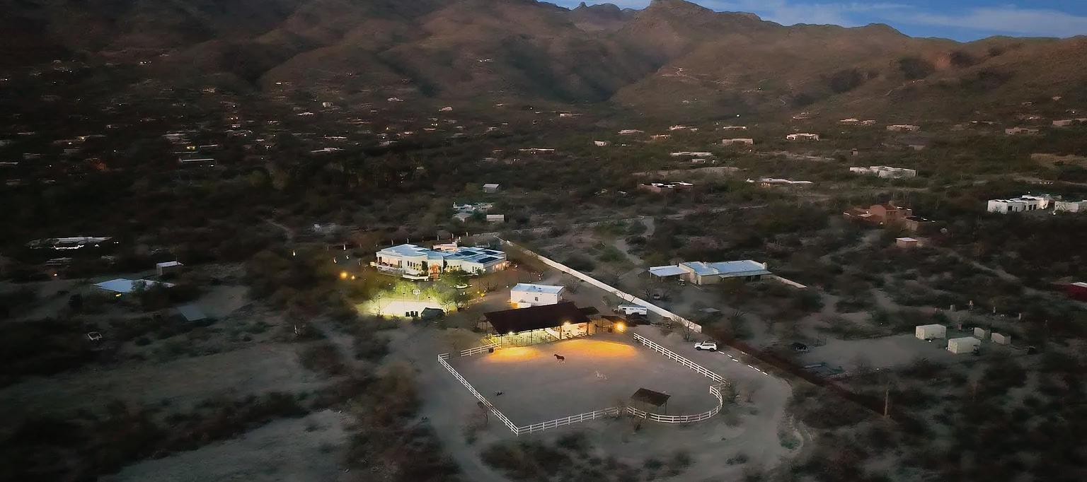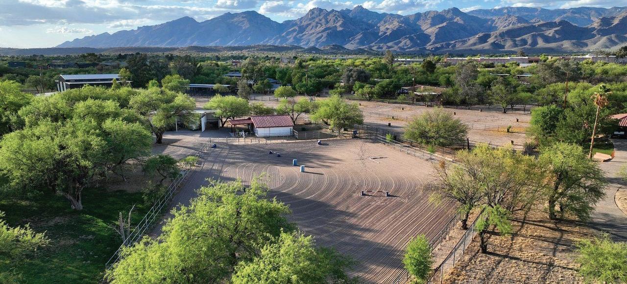 Horse facilities include a massive ventilated covered barn, four large stalls with auto waterers, large lighted arena, tack room, hay storage, wash rack, bathroom and a fire pit. Unlimited horseback riding right off the property to miles of trails and the Agua Caliente and Tanque Verde washes.