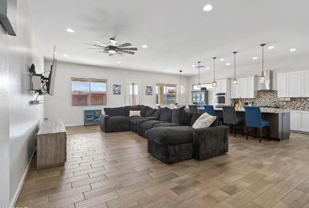 This lovely new 3,038 sq ft home has 3 beds, 3 baths and 2 bonus rooms. Bottom level includes a beautiful open kitchen with all the perks ~ soft close cabinets, granite counters, large island/bar table. The living area next door is cozy with a gas fireplace. A bonus room, 3/4 bath and mudroom also sit on the lower level. The second story includes 3 bedrooms, 2 bathrooms, another bonus room and the laundry room. Beautiful master bed and bath with a spacious closet. Let’s not forget this home has an attached two car garage, xeriscaping with sprinkler system, granite counters and soft close cabinetry in all the bathrooms and laundry room, step lighting along the stairs, plenty of natural light, thoughtful storage spaces, exterior sitting areas in front and back and so much more!