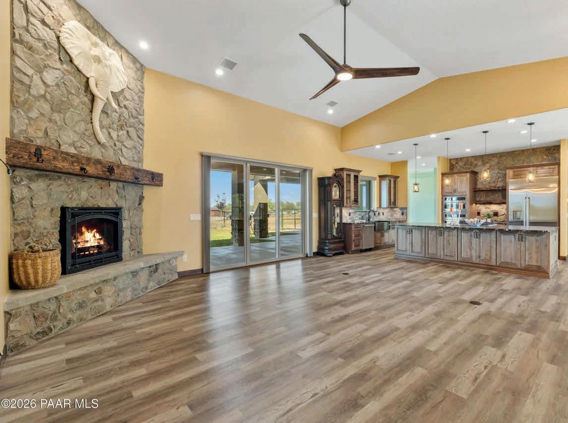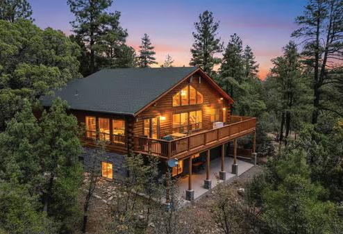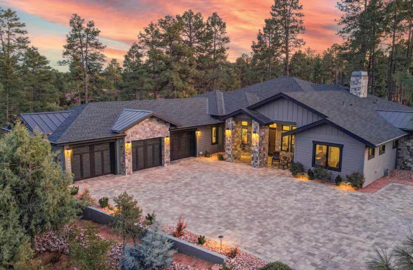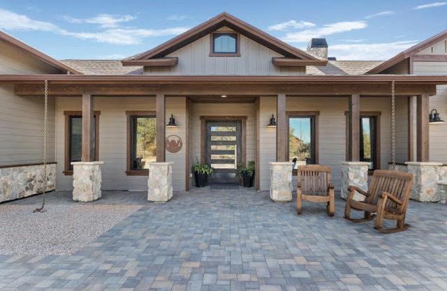 Nestled within the enchanting landscapes of Prescott AZ, this extraordinary residence is a harmonious blend of rustic charm and modern luxury. As you approach this charming home, you'll be greeted by an inviting facade that hints at the stunning experiences awaiting you upon entering the 4 bed, 5 bath, 3 car, 2 story w Elevator, 5161 sf custom residence in the prestigious Hassayampa Village Community. This home has been thoughtfully designed ensuring ample private spaces for family or guests while providing plenty of room to come together. Comfort and versatility at its finest. Step inside and be captivated by soaring ceilings accented with rustic wood beams, high-end finishes, and an awe-inspiring two-story stone wall showcasing a dramatic water feature and a gas fireplace. Your eyes will be drawn to the exquisite custom staircase and all the natural light pouring through the skylights and large windows, illuminating every corner and offering panoramic views of the surrounding pines and mountains. Optional membership to Capital Canyon Club w premium amenities & championship golf.