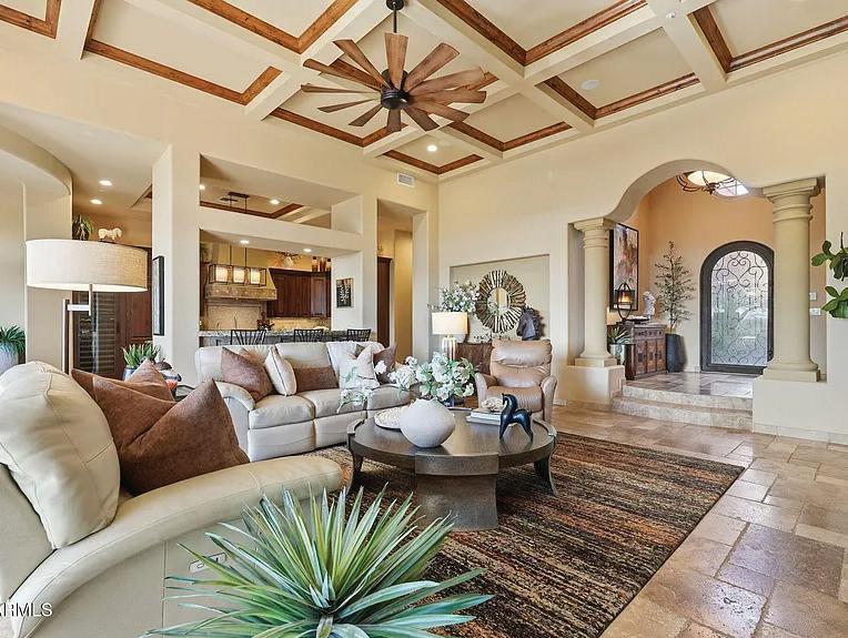 Experience refined desert living in this exceptional one-owner executive home, where quiet elegance meets impeccable design. Perfectly positioned to capture breathtaking panoramic views of the Organ Mountains, this remarkable property offers both sophistication and comfort in every detail.