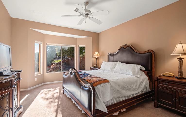 An attractive compact low maintenance single level 3 bedroom 2 bathroom home enjoys the natural beauty of the Red Rocks, including Bell Rock, from the front. To the rear, the covered back patio has views of the desert green landscape of the Mesa. It also runs alongside the fairway of the 5th Hole of the popular Sedona Golf Resort. You can also see the lake that sits in front of the 5th Tee. The elevated ceilings and large windows give the home a warm but open feeling, bringing the outside in. Split floorplan. Warm Main Bedroom with en-suite bathroom plus two bedrooms with bathroom in between. Either bedroom could easily be utilized as an office, den or work out room. The home is genuinely one level, with no steps or differing levels to negotiate. The wood burning fireplace in the living room has never been used by the current Owners.