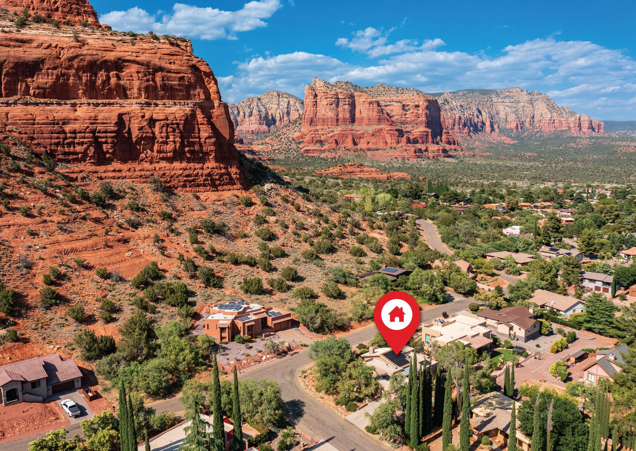 Have a front row seat to Sedona’s inspiring red rocks in this unique naturally lit, 3BR, 2BA, 2018 SF custom home designed for sustainable living. Sit in your private park at the base of Castle Rock on one of the top walking streets in the Village of Oak Creek. The Coconino National Forest is across the street and with full length windows in the living and dining areas, you can enjoy the awesome views regardless of the weather. Want more privacy, go to the back deck and enjoy your garden and orchard, complete with a greenhouse. The beautifully renovated kitchen is connected to the back deck and side yard to maximize indoor and outdoor connectivity. Updated HVAC & hot water systems; extra parking a plus. A smart drip system keeps the landscape vibrant and an owned solar system keeps your annual electric bill to virtually $0 depending upon your type of usage. Don’t miss this opportunity to live in the red rocks! Call for details.