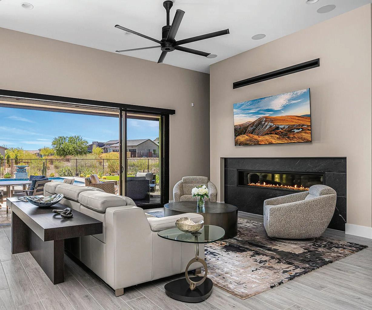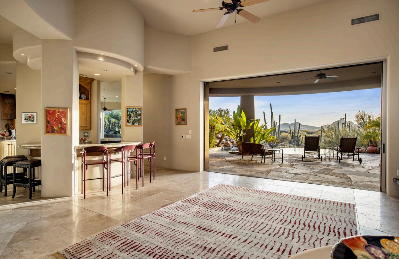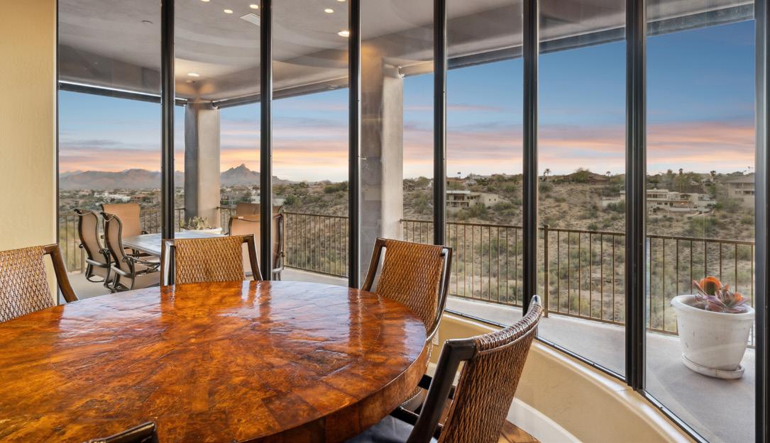 One of a kind Contemporary estate located in the world class community of Desert Mountain in North Scottsdale, Arizona. Designed and built by one of the top design build firms-JK Properties-Justin Kilbane. Situated on 4.7 acres at the top of the Desert Mountain community and overlooking the valley of the sun, this setting is arguably one of the best in all of North Scottsdale. With 3,000 acres of open space that parallels the home as well as the Tonto National Forest just to the north, this extremely private setting is unmatched. As you enter the private gated driveway, you will be awed by the striking design of this home. Once inside the one level open great room floor plan leads to an expansive outdoor living area complete with spectacular views in every direction. Enjoy the dual sided fire feature as you take in the panoramic desert and mountain views. The seamless connection between the indoor and outdoor spaces allows for the perfect environment to entertain guests or unwind in solitude. The design incorporates floor-toceiling glass walls that flood the space with natural light, while also offering unparalleled privacy.