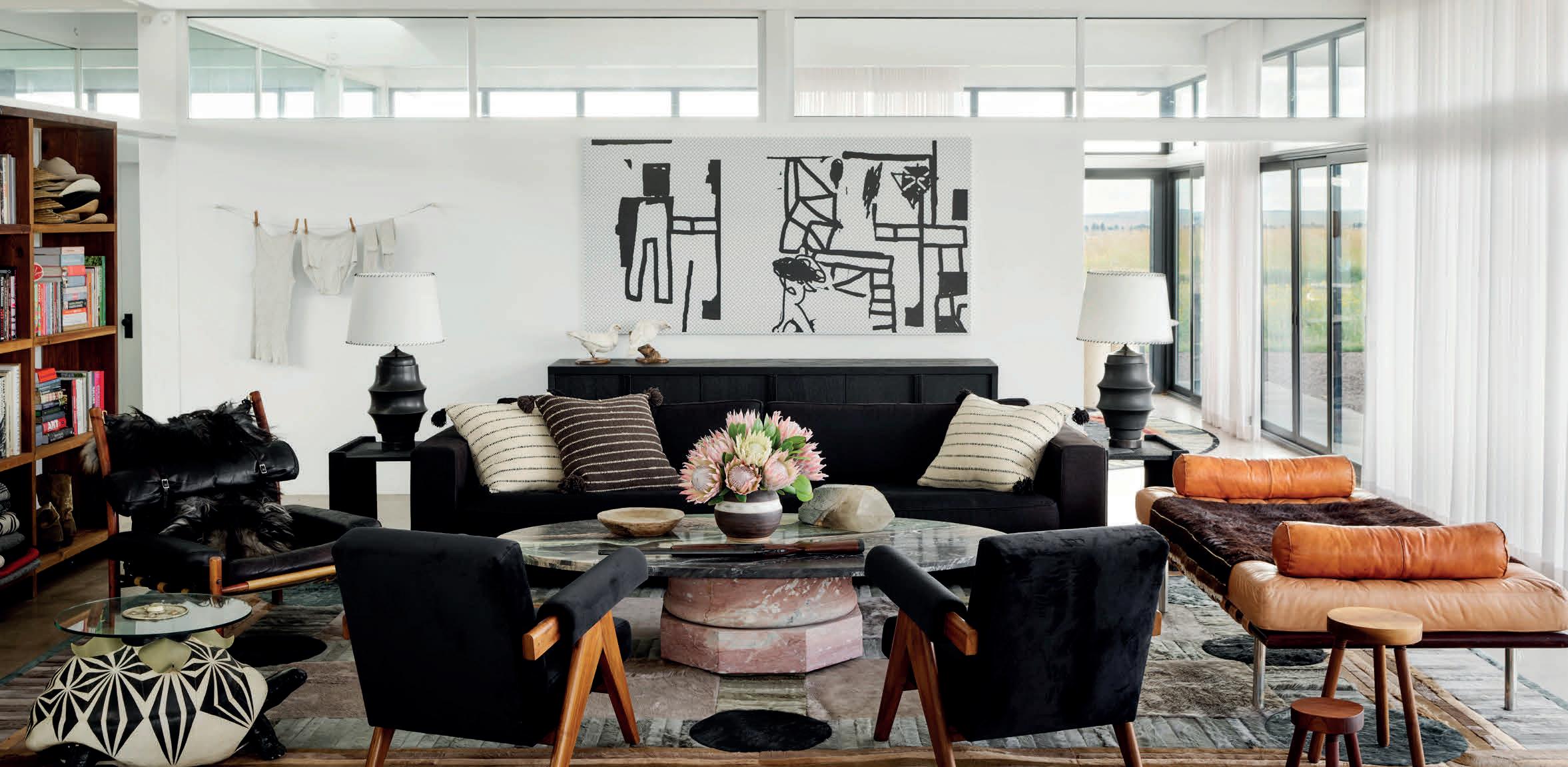 The home’s sprawling property extends this design sensibility outdoors. A desert