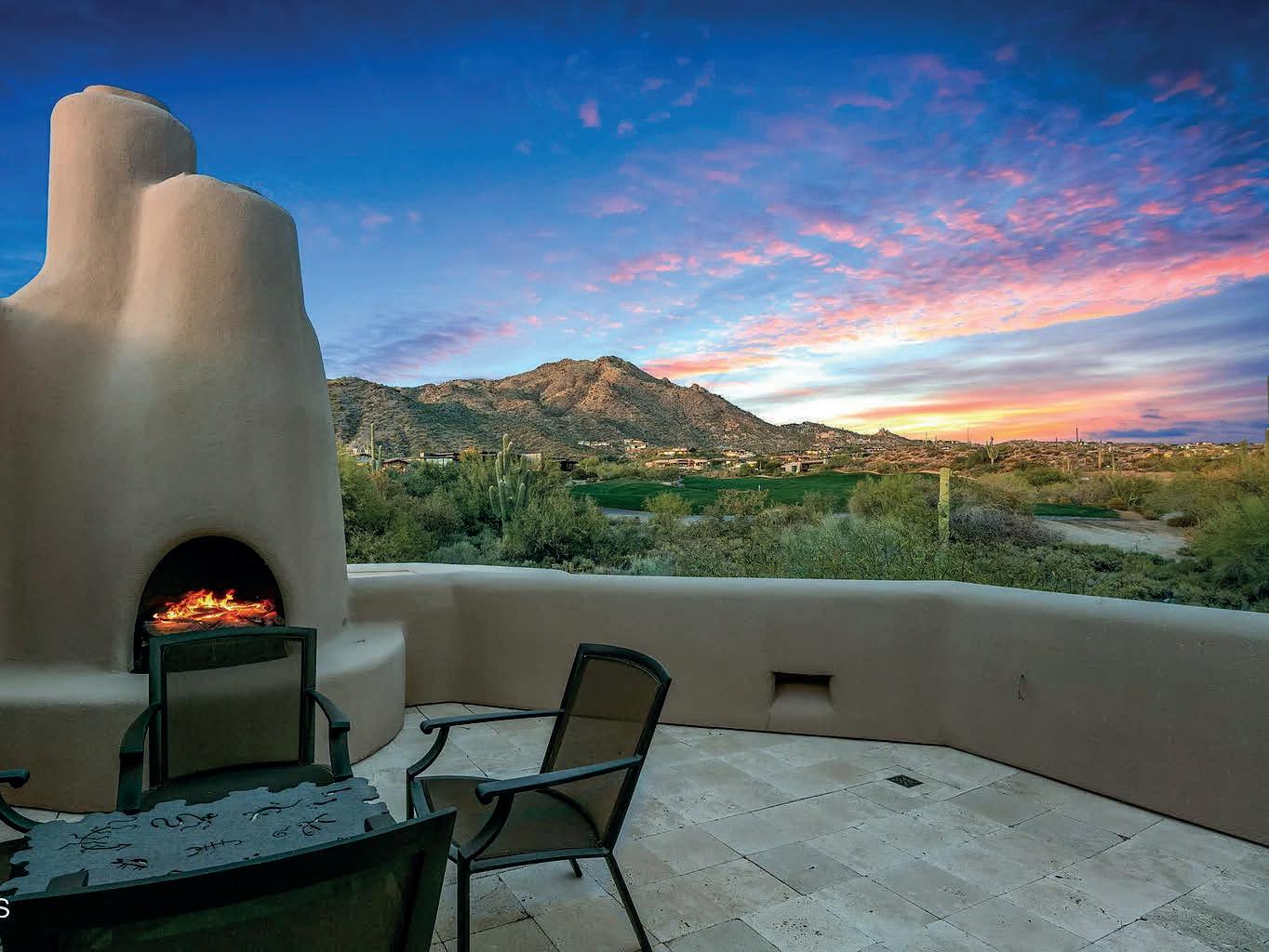 Golf membership available! Experience timeless desert living in this stunning Lee Hutchison-designed masterpiece, perfectly positioned to capture sweeping down-valley views, glowing sunsets, and twinkling city lights. Superior craftsmanship with natural stone and wood beams, this 4-bedroom, 4 bath & 2 1/2 baths estate blends design with elegance and modern comfort. Featuring a chef’s kitchen with premium appliances and custom cabinetry, flowing seamlessly into the great room with exposed beams, artisan details, and expansive glass walls. The home offers two dedicated offices, detached guest casita, and flex room. Designed for Arizona’s iconic indoor-outdoor lifestyle, the home offers 180-degree covered patios, an outdoor fireplace lounge, built-in BBQ, and lush desert landscaping.