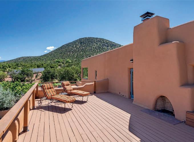 Nestled beside Sun Mountain in the rolling foothills along Santa Fe’s most storied corridor, this picturesque estate seamlessly fuses the romance of historic New Mexico with contemporary luxury and sustainable living. Resting on 3 serene acres just 1.5 miles from Museum Hill and 3 miles from the Plaza, the property showcases a solarpowered 3-bedroom, 3-bath main residence with flexible living space and an oxygenated primary suite designed for ultimate wellness and comfort. A charming 1-bedroom casita with a kiva fireplace and a 968-square-foot studio above the garage—complete with a deck, panoramic views, kitchenette, and ¾ bath—offer inspired spaces for art, retreat, and connection.
