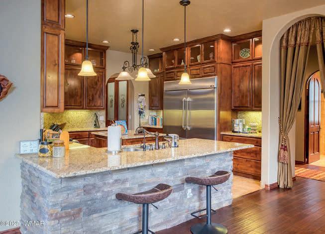 Imagine Your Perfect Dream Cabin in the Heart of the Ponderosa Pine Forest-Perched at 7,000 feet, this thoughtfully designed log cabin blends rustic charm with modern luxury. Nestled in the towering Ponderosa pines, it’s the ideal retreat for those seeking both adventure and serenity. Step inside and be greeted by an expansive Great Room, complete with a stunning full rock-faced fireplace and unobstructed views of the forest. The space flows seamlessly into a gourmet kitchen, featuring a 48’’ gas range with double ovens, pot filler, all-fridge/allfreezer, granite counters and a spacious walk-in pantry. Whether you’re hosting a large gathering or enjoying a quiet night in, this kitchen has everything you need to inspire your inner chef. Perfectly designed for family and guests, the cabin offers 3 private bedroom suites each with its own bath and separate outdoor accesses, leading to the extensive decks. The oversized loft serves as a secondary gathering/game space & sleep loft; complete with custom dual bunk beds with trundles providing sleeping for an additional 4. As expected, the loft allows an additional outdoor balcony for a beautiful heightened scenic view of the towering pines. The split primary bedroom is a sanctuary, offering his-and-her closets, a luxurious snail shower with dual heads, a soaking tub, dual vanities, and a private water closet with bidet features. Every detail in this cabin has been professionally curated with no expense spared. Soaring tongue-and-groove wood ceilings, custom lighting fixtures, and beautiful river rock accents highlight the cabin’s rustic charm. Engineered hardwood flooring runs throughout the main living spaces, with plush carpeting in the bedrooms. Not to be overlooked, the oversized 3-car garage provides ample space for vehicles and gear, while the large utility room with folding space and sink adds convenience. Other notable features include a tankless water heater, central vacuum system, propane-powered fireplaces, and an outdoor fire pit perfect for chilly mountain evenings. The cabin is situated in the gated Pine Canyon Community, which offers year-round street maintenance and exclusive access to a clubhouse. The clubhouse boasts game tables (billiards, table tennis, shuffleboard, and foosball), as well as a library, kitchen, and cozy conversation spaces. This is the ultimate cabin retreat where rustic elegance meets modern convenience in the heart of nature.