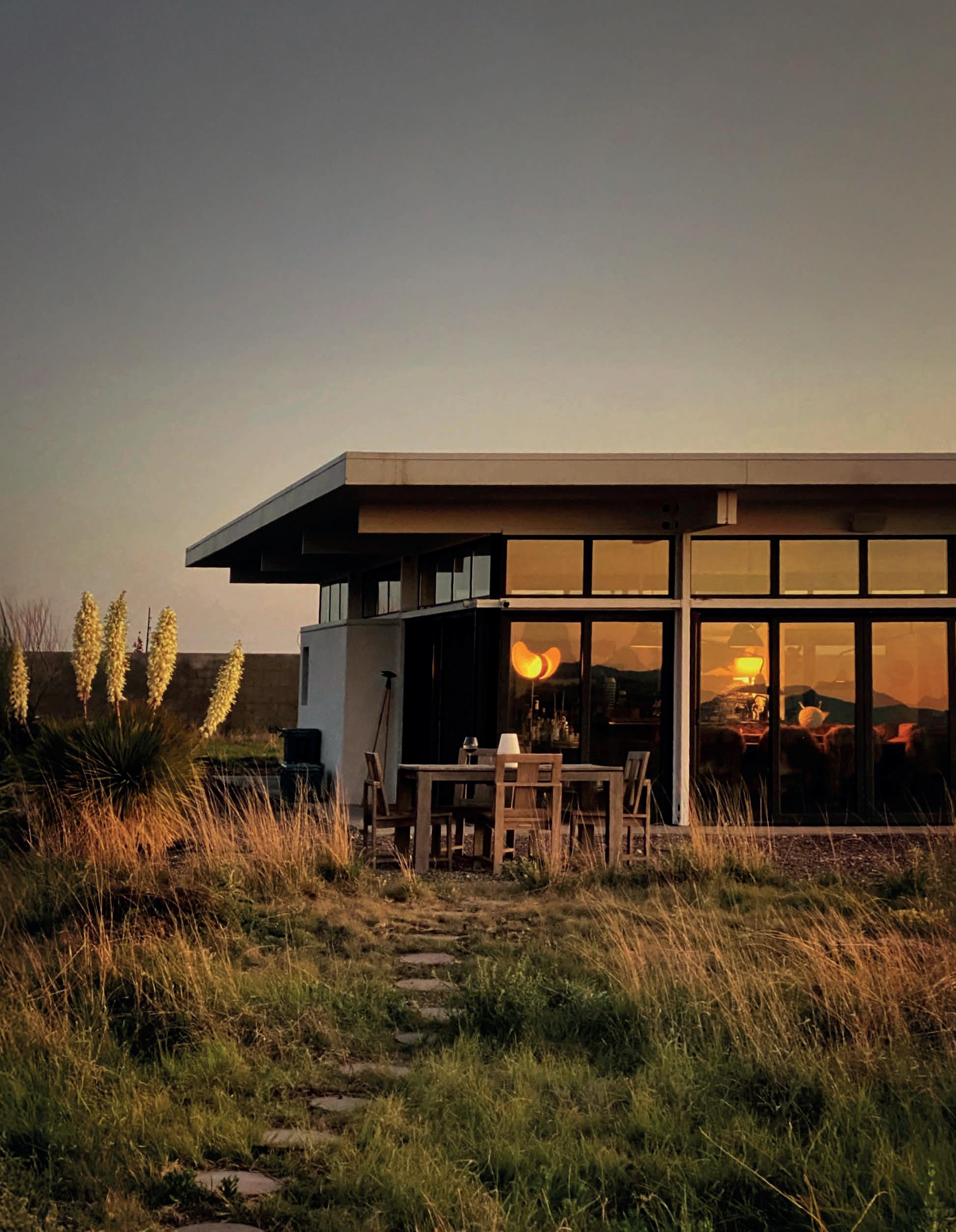 The residence of internationally acclaimed photographer Douglas Friedman, situated on 10 acres, represents a rare convergence of architectural vision and scenery. Listed for $2,995,000, this three-bedroom, twobathroom home has earned its place among the region’s most celebrated architectural landmarks—a distinction reflected in its selection by Architectural Digest as one of its “50 Great Houses.” Situated just two miles from Marfa’s center, the property adjoins thousands of acres of ranch land, offering uninterrupted views of the Davis Mountains to the north and the Haystack Mountains to the east.