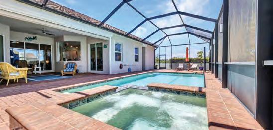 Prepare to be captivated by this custom 2023 Spanish courtyard SMART home. This 4-bedroom, 5½-bath masterpiece blends luxury, function, and resilience with stem-wall construction, hurricane-rated windows and doors, and elevated design. Set on a gated property, a palm-lined driveway leads to grand double doors with wrought iron and a sunlit transom window. Inside, custom plaster walls, arches, and a coastal mural by artist Alex Sobolevsky create a stunning entry. The living room features coffered ceilings, an imported Spanish alabaster chandelier, and a dramatic floorto-ceiling fireplace. The gourmet kitchen includes a granite waterfall island, brass lighting, Sub-Zero appliances, gas cooktop, hidden pantry, and designer faucets. A wine cellar and elegant dining room elevate entertaining. The owner’s suite offers a spa bath, SMART bidet, rain shower, soaking tub, and private sitting room. Each bedroom is ensuite with luxury finishes. Additional highlights include tile floors with wood inlays, custom lighting, crown molding, and detailed ceiling work. The covered lanai features an outdoor kitchen, A/C, hurricane shades, sauna, and sparkling 15,000-gallon pool and spa. Located near four marinas and Freedom Boat Club Venice, this home is a rare blend of beauty, durability, and modern comfort.