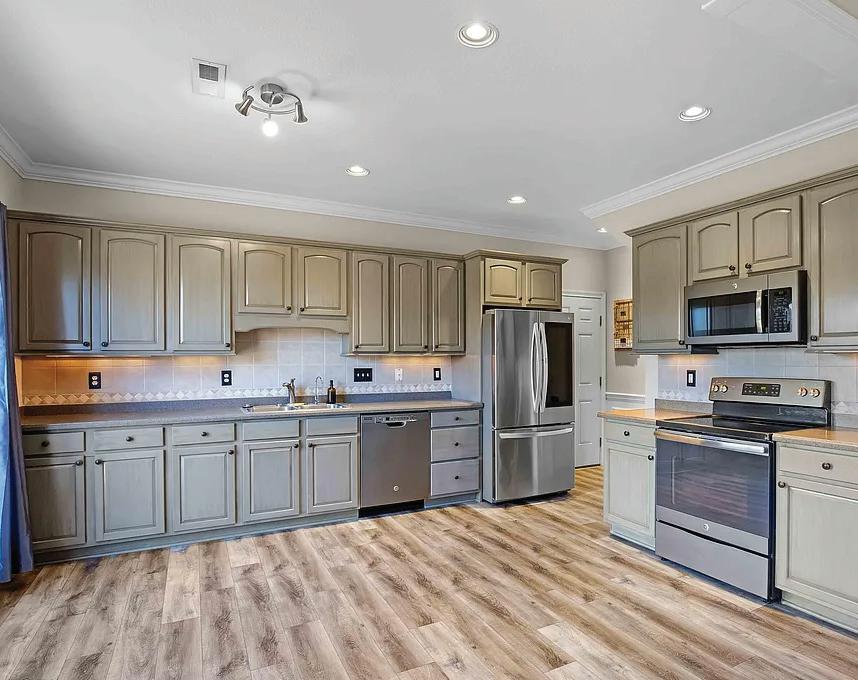 Welcome to this stunning 4-bedroom, 2.5-bath home offering over 2,300 sq ft of updated living space and a modern, functional layout perfect for today’s lifestyle. Step inside to an inviting open-concept main level featuring a stylish kitchen with stainless steel appliances, slow-close cabinetry, garbage disposal, and vinyl plank flooring throughout. The spacious dining and living area is ideal for family gatherings or entertaining guests. The primary suite includes a walk-in tile shower and tasteful finishes. Upstairs also offers two additional bedrooms, a full bath, and two convenient linen closets for added storage.