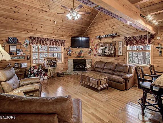 Private log cabin retreat near Norris Lake in New Tazewell, TN. Welcome to 249 Timber Creek Road—an impeccably maintained, never-rented log cabin offering exceptional flexibility as a full-time residence, vacation home, or short-term rental opportunity. Set on over 3 acres, this mountain cabin provides privacy with scenic lake and mountain views, while remaining just minutes from Norris Lake and popular marinas including Norris Landing, Straight Creek, Cedar Grove, Lone Mountain, and Beach Island Marina, along with nearby dining and a local golf course. Inside, the open floor plan features hardwood floors, expansive windows, and abundant natural light. The main-level primary suite offers comfortable one-level living, while the stone fireplace creates a warm, inviting space ideal for relaxing after a day on the lake. The lower level includes a spacious family or game room with walk-out deck access and an additional bedroom—perfect for guests. An oversized loft with a full bathroom provides flexible sleeping or living space, making the layout ideal for entertaining or maximizing rental potential.