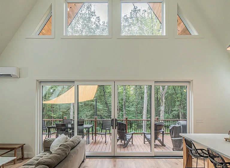 Welcome to 293 Corinth Road, a striking modern A-Frame in the Kentucky Lake Subdivision. Set on three lots (.6 acre) at the end of a quiet road, this home offers privacy, wooded surroundings, and rare TVA dock permit privileges if the buyer chooses to apply for a permit. The dramatic design features expansive skylights, open layout, and smart upgrades including Samsung appliances and a Sonos whole-house audio/visual system indoors and out. Outdoor living is elevated with two main decks and a private master deck, all built with low-maintenance trex. The master suite has direct deck access, while the unfinished 500 sq ft walkout basement with plumbing, offers potential for added living space. With room to expand, modern finishes, and the beautiful KY Lake nearby, this property combines architectural style, functionality, and comfort in one unique package.