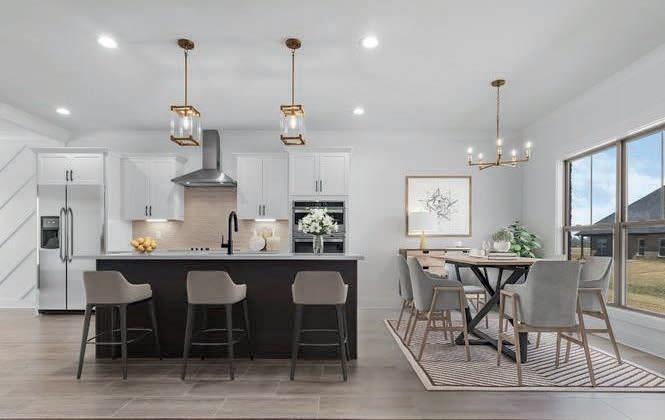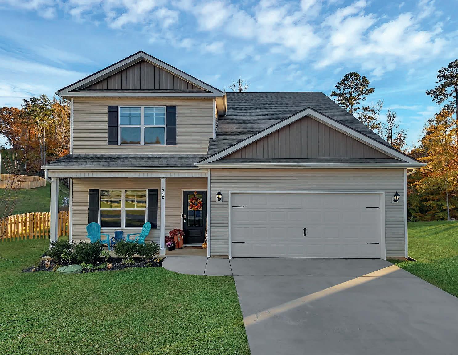 newly constructed lake home blends modern design with timeless charm, all while offering the flexibility and freedom you’ve been looking for. Inside, you’ll find 3 spacious bedrooms plus a versatile loft with an office—perfect for working from home or creating your dream hobby space. The primary bedroom features its own full private bathroom, while the additional full bath is conveniently located in the hallway near the secondary bedrooms and laundry area. Soaring ceilings, waterproof flooring, and a bright open layout set the stage for everyday living and entertaining. The kitchen is a true centerpiece, with sleek new appliances, plenty of counter space, and an island ideal for serving family and friends.