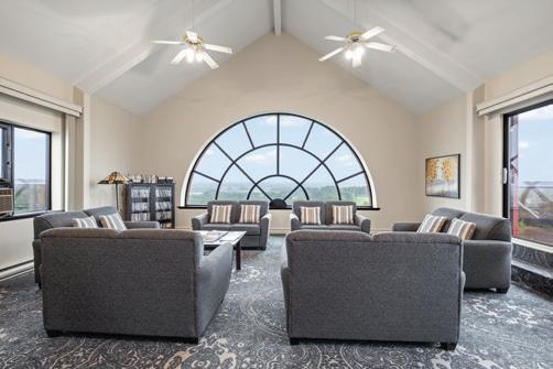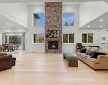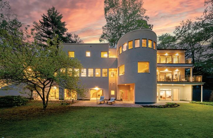 Architecturally striking home with scenic views, featuring seamless indoor-outdoor living, high-end finishes, smart home technology, multiple offices and, a luxurious primary suite, and a fully equipped lower level with theater, sauna, and entertainment spaces.