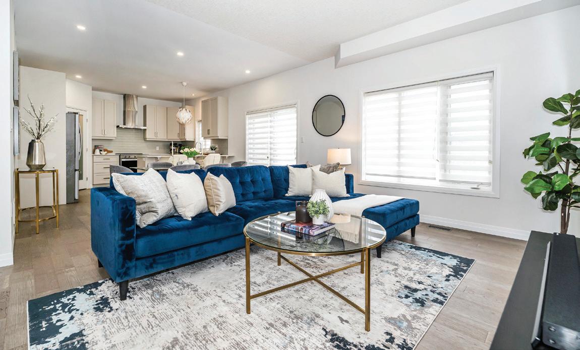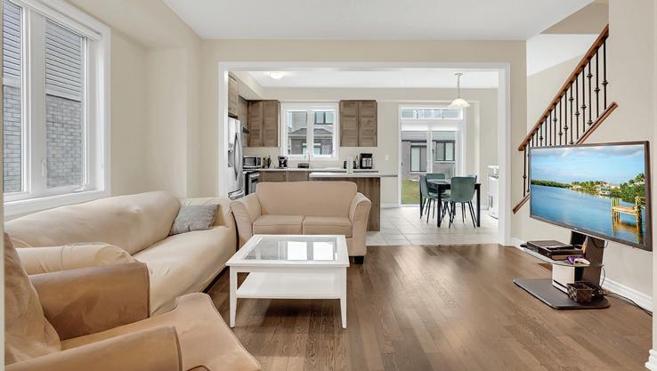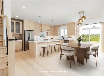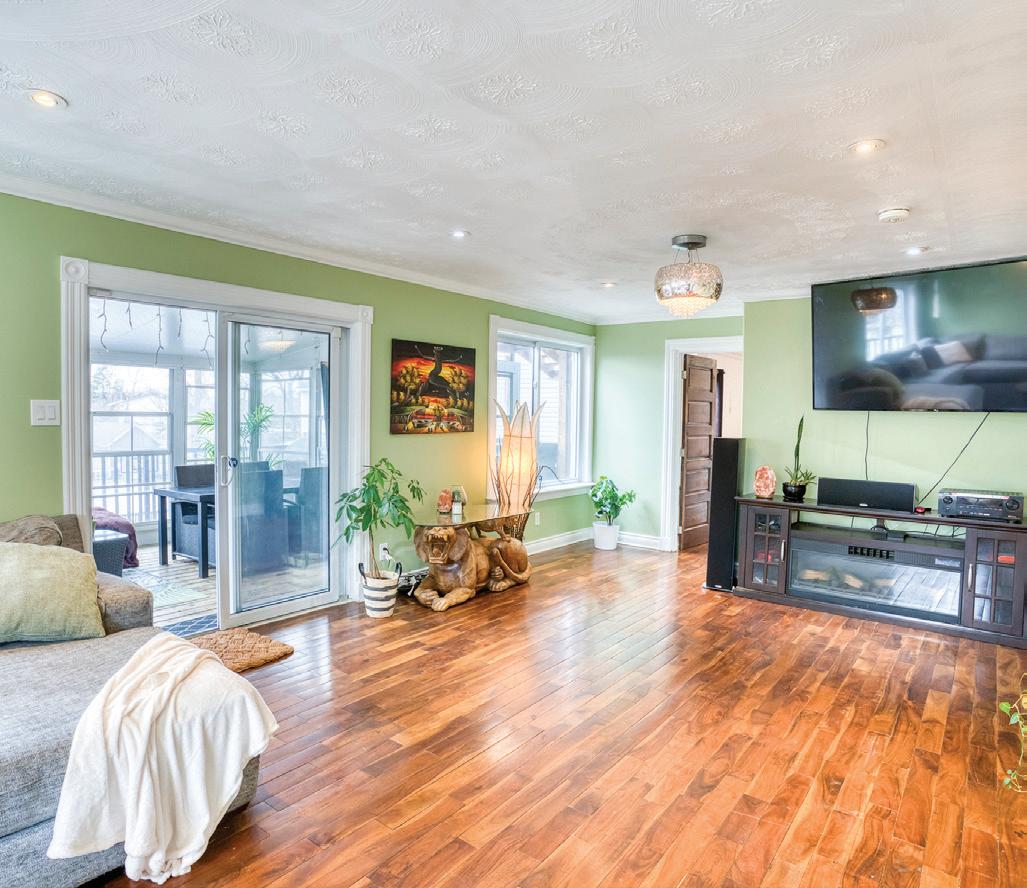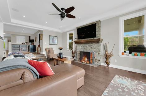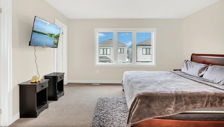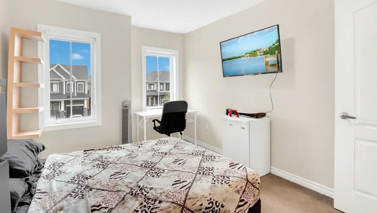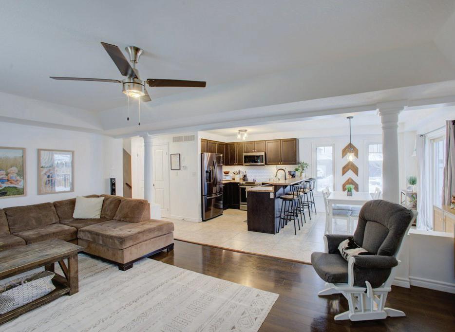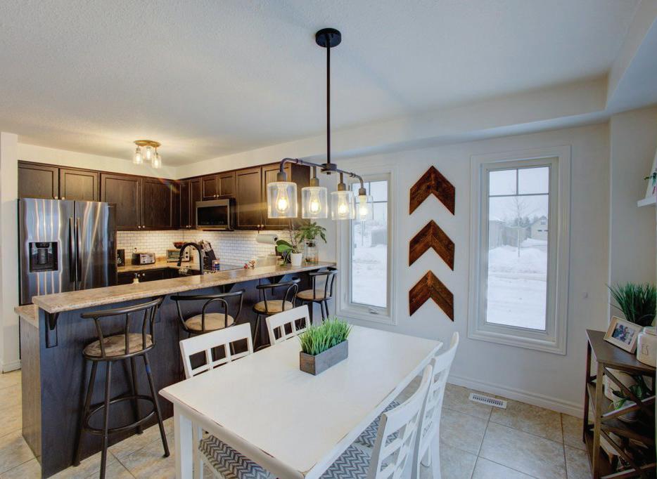 As you enter, you are welcomed into a bright open-concept layout with 9ft ceilings. The kitchen is a true highlight, with granite and concrete counter tops, generous size island, upgraded appliances and walk-in pantry. Perfect for entertaining, the adjoining dining and living areas provide ample space for gatherings, while the threeseason room offers a relaxing retreat with views of the outdoors. This level also includes a convenient laundry room, half bath for guests, and additional bedroom/home office. Upstairs, you’ll find two generously sized bedrooms, 4-piece bathroom and room for bonus/rec room which awaits your personal touch.