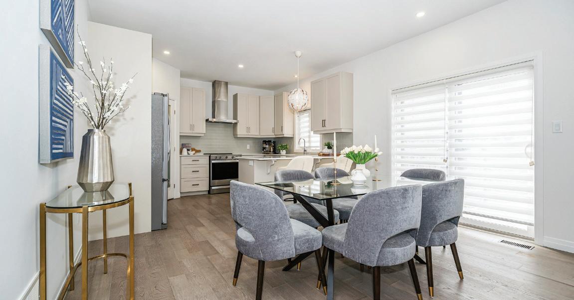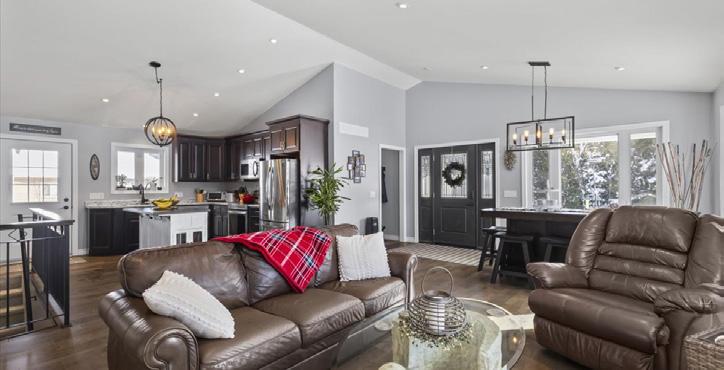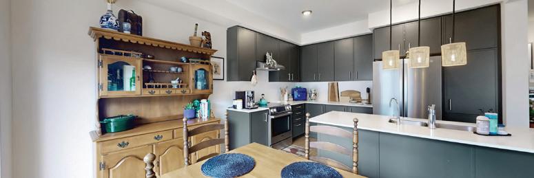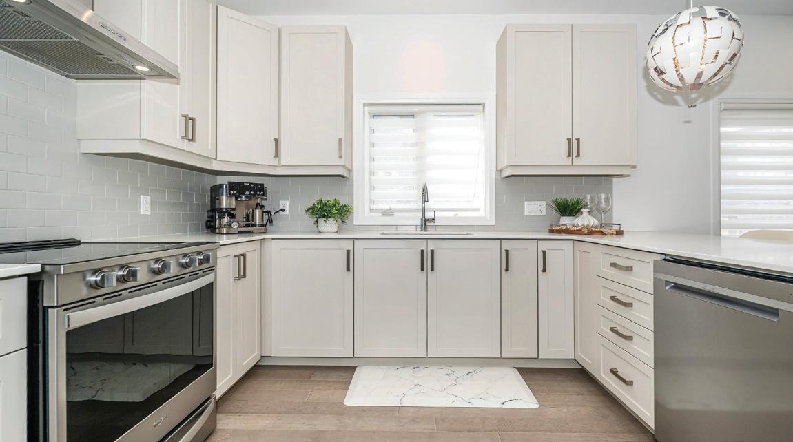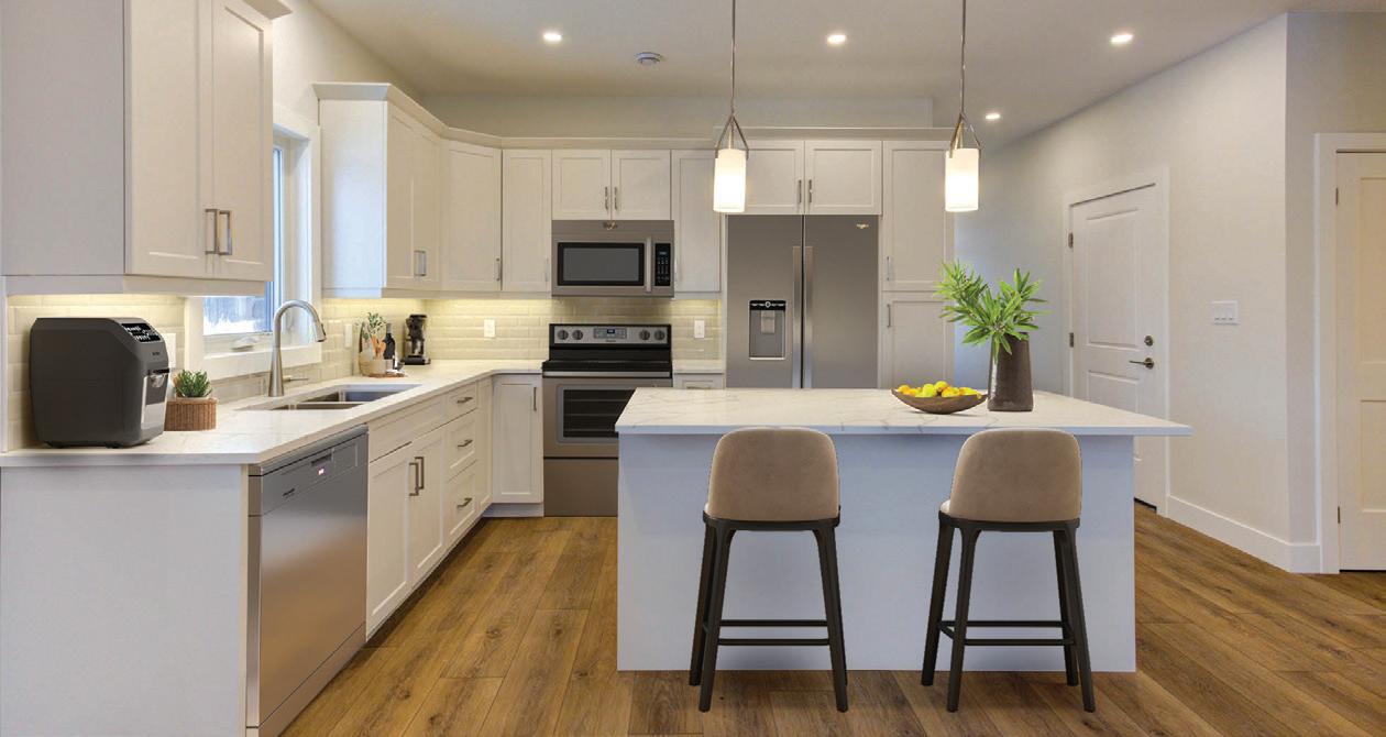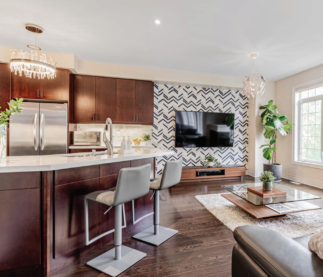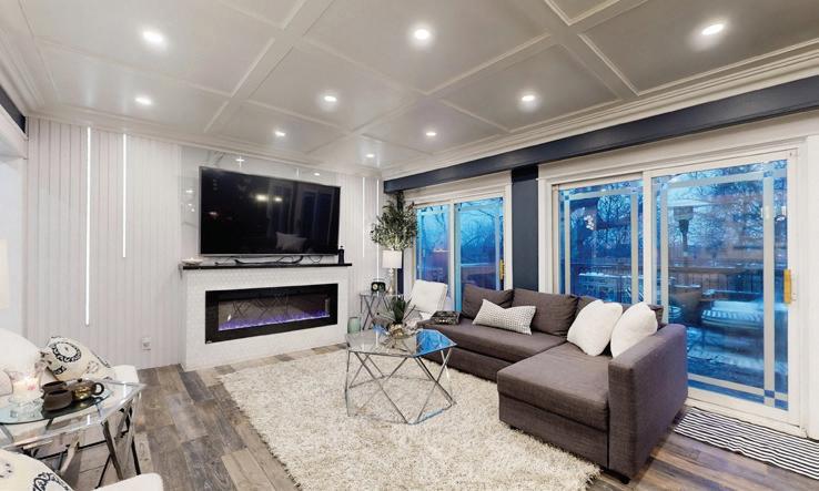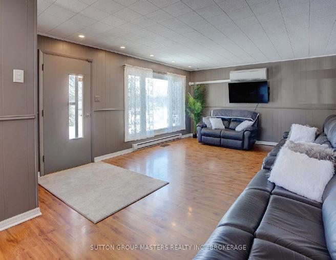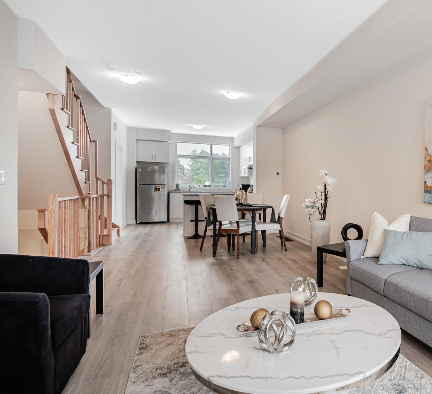 As you enter, you are welcomed into a bright open-concept layout with 9ft ceilings. The kitchen is a true highlight, with granite and concrete counter tops, generous size island, upgraded appliances and walk-in pantry. Perfect for entertaining, the adjoining dining and living areas provide ample space for gatherings, while the threeseason room offers a relaxing retreat with views of the outdoors. This level also includes a convenient laundry room, half bath for guests, and additional bedroom/home office. Upstairs, you’ll find two generously sized bedrooms, 4-piece bathroom and room for bonus/rec room which awaits your personal touch.