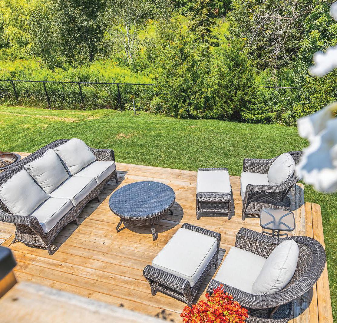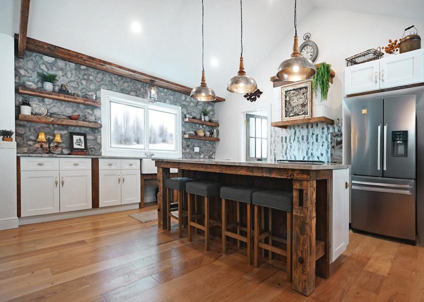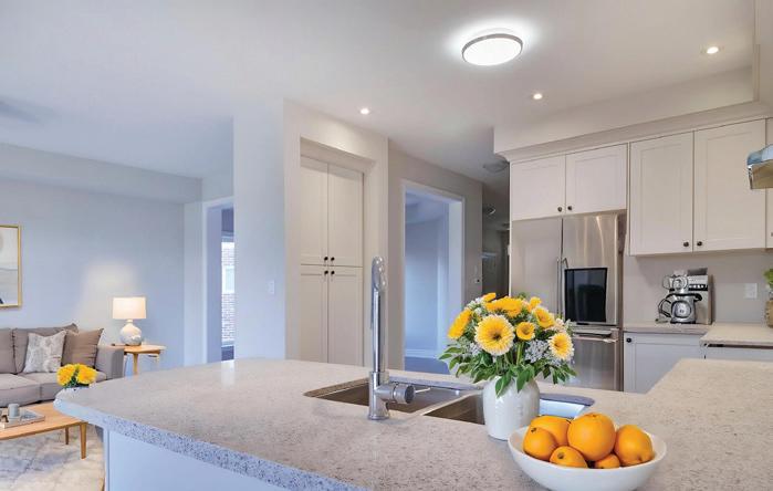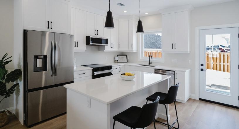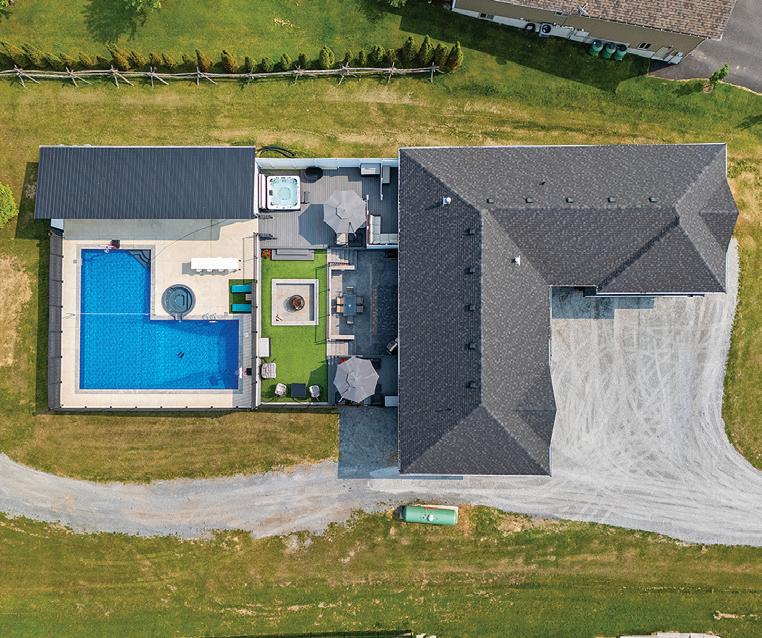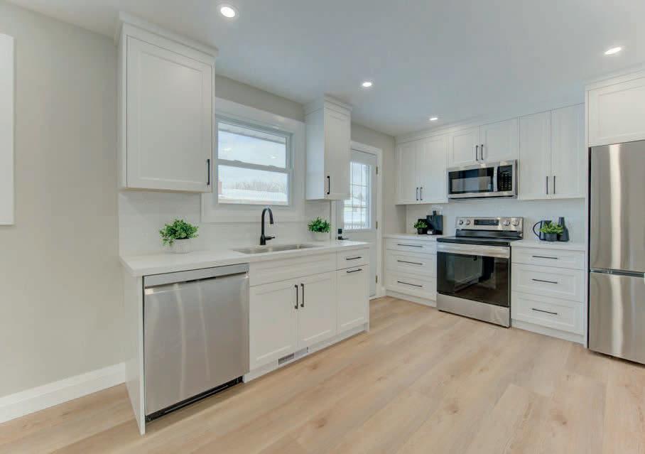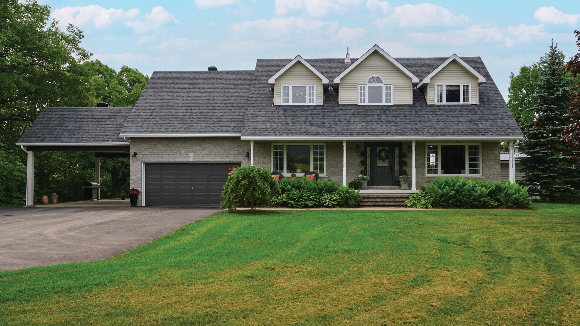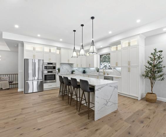 As you enter, you are welcomed into a bright open-concept layout with 9ft ceilings. The kitchen is a true highlight, with granite and concrete counter tops, generous size island, upgraded appliances and walk-in pantry. Perfect for entertaining, the adjoining dining and living areas provide ample space for gatherings, while the threeseason room offers a relaxing retreat with views of the outdoors. This level also includes a convenient laundry room, half bath for guests, and additional bedroom/home office. Upstairs, you’ll find two generously sized bedrooms, 4-piece bathroom and room for bonus/rec room which awaits your personal touch.