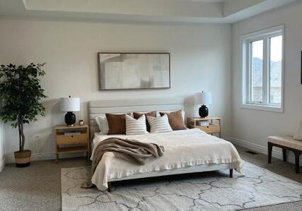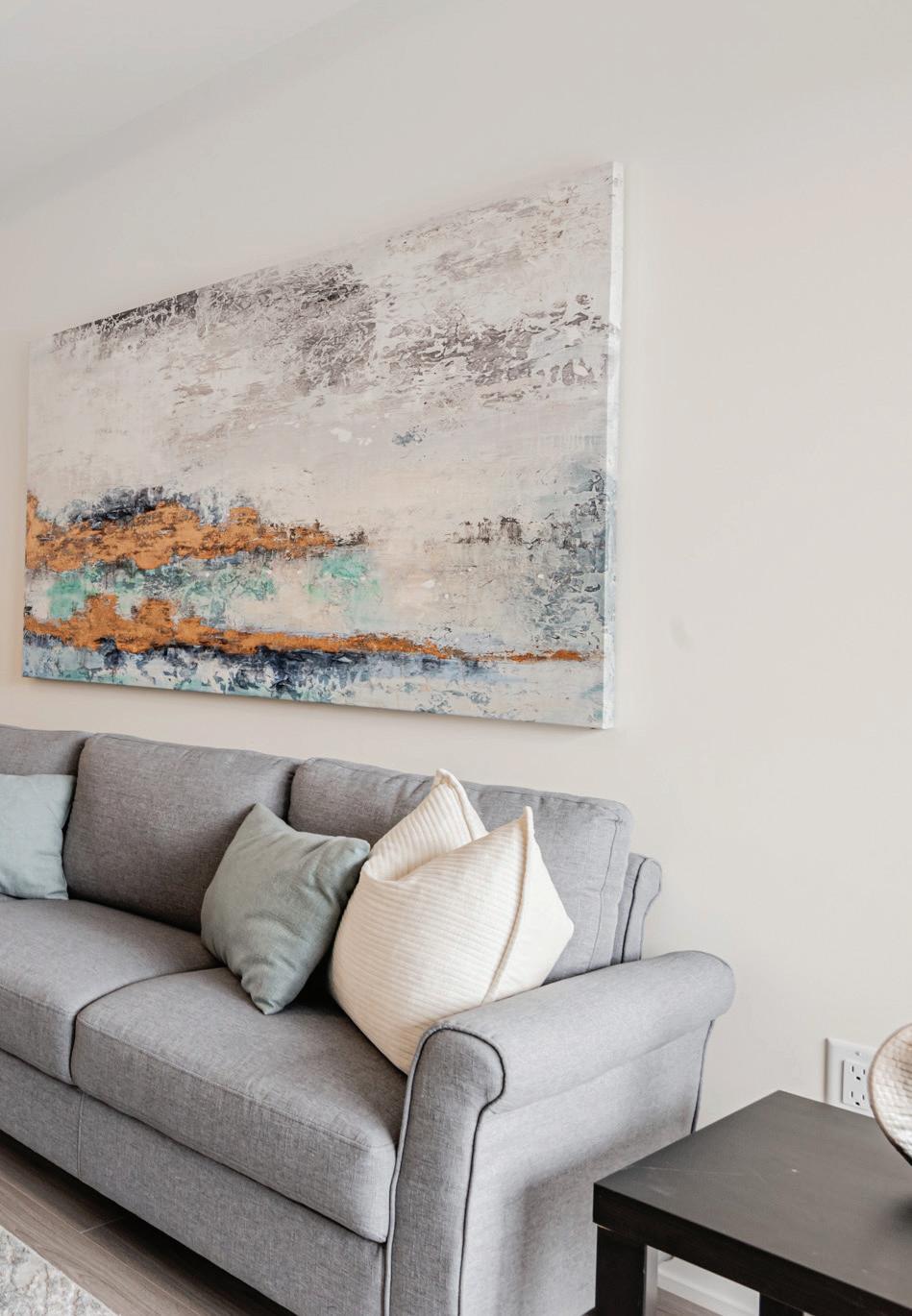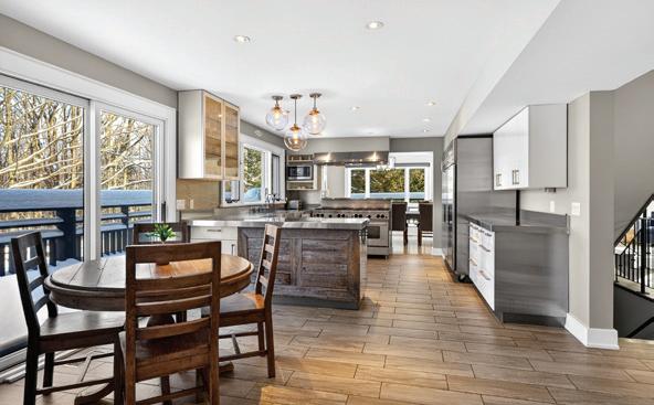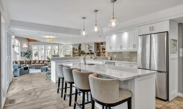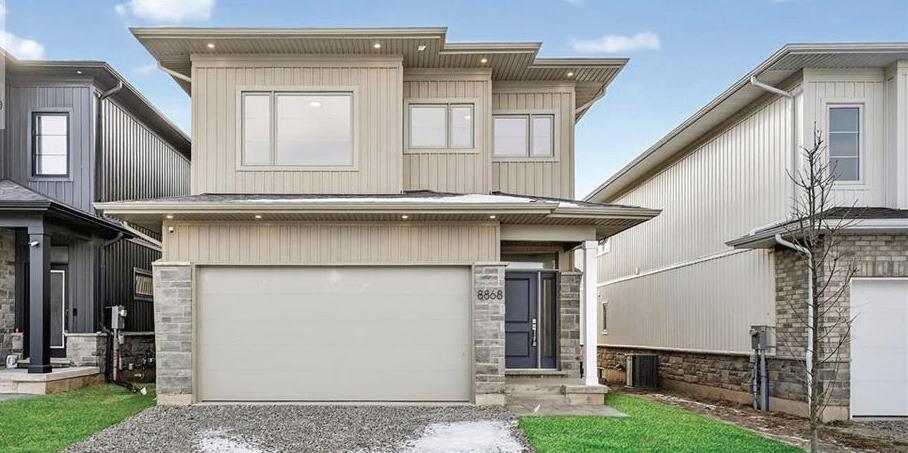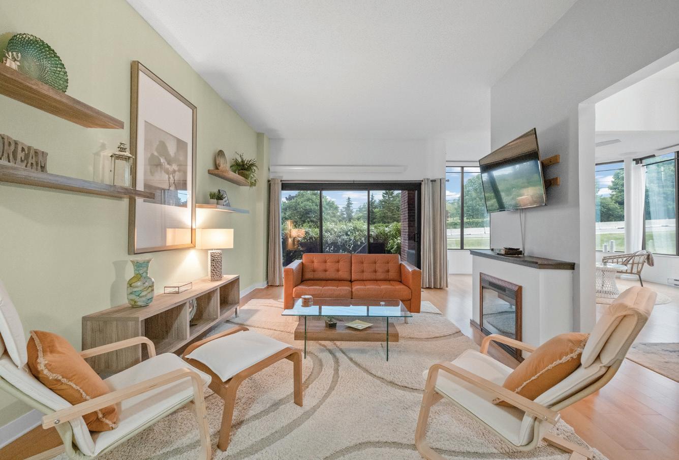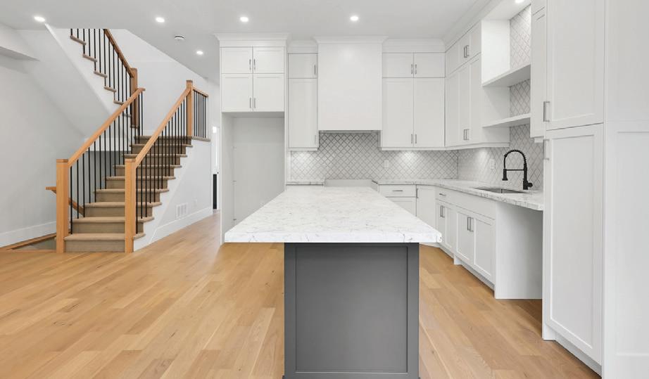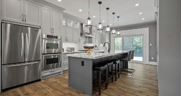 As you enter, you are welcomed into a bright open-concept layout with 9ft ceilings. The kitchen is a true highlight, with granite and concrete counter tops, generous size island, upgraded appliances and walk-in pantry. Perfect for entertaining, the adjoining dining and living areas provide ample space for gatherings, while the threeseason room offers a relaxing retreat with views of the outdoors. This level also includes a convenient laundry room, half bath for guests, and additional bedroom/home office. Upstairs, you’ll find two generously sized bedrooms, 4-piece bathroom and room for bonus/rec room which awaits your personal touch.