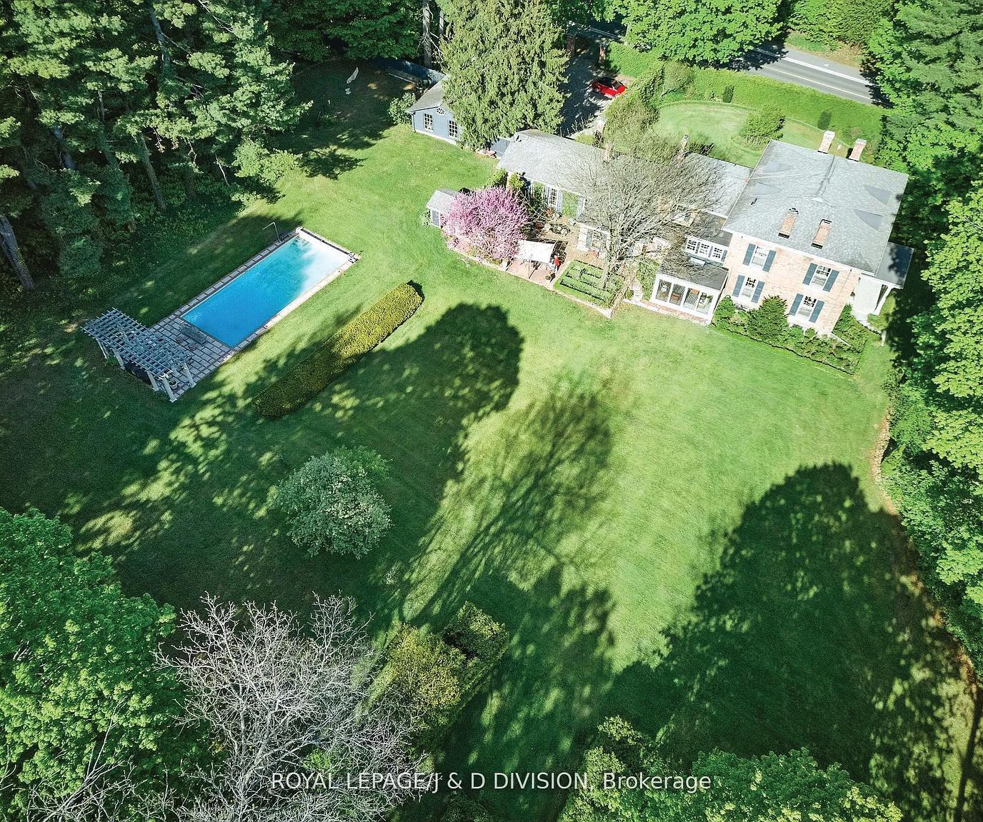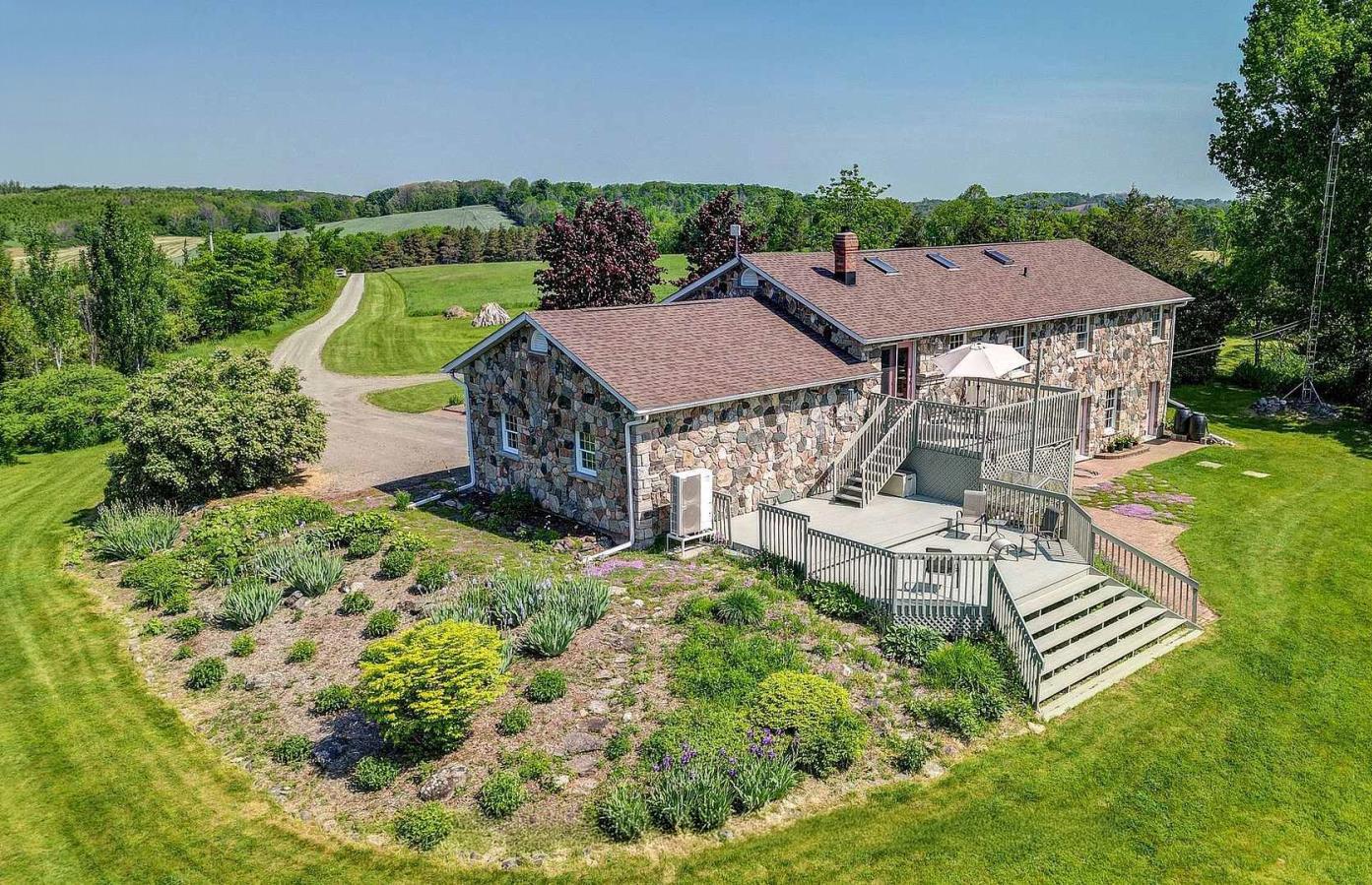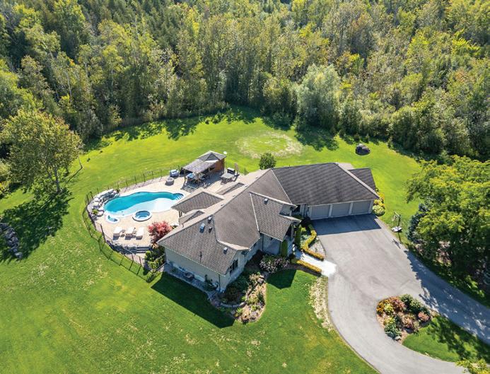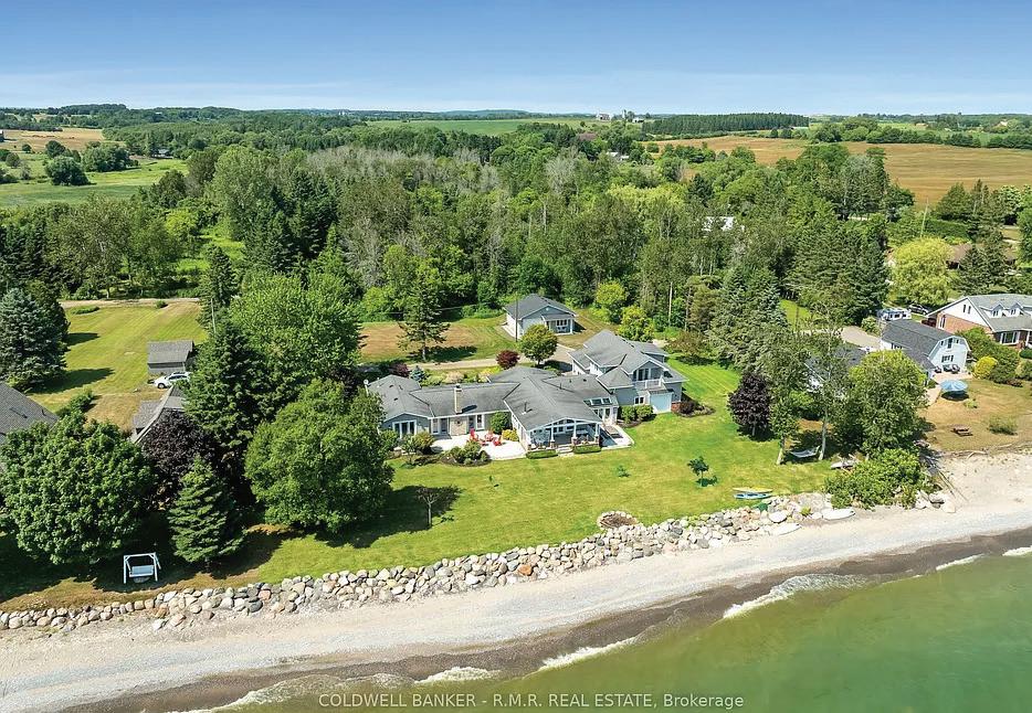 Rare 1.014-acre estate backing onto protected Philips Lake, offering stunning four-season Muskoka-like views and ideal multigenerational living with a main home and self-contained secondary suite with elevator. Features include observation deck, greenhouse, and a heated 6-car garage,