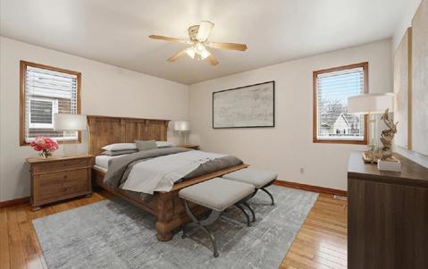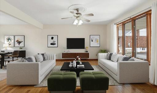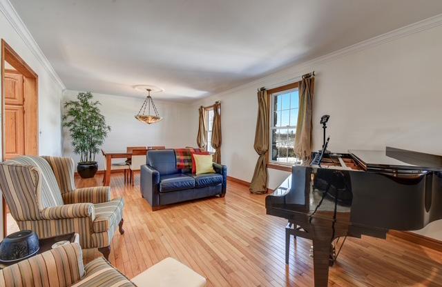 Step inside to gleaming hardwood floors throughout the main level, filled with natural light from large windows. The spacious living and dining areas create a warm, inviting atmosphere—perfect for entertaining or relaxing at home.