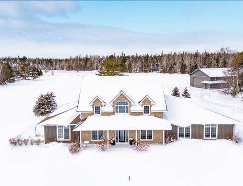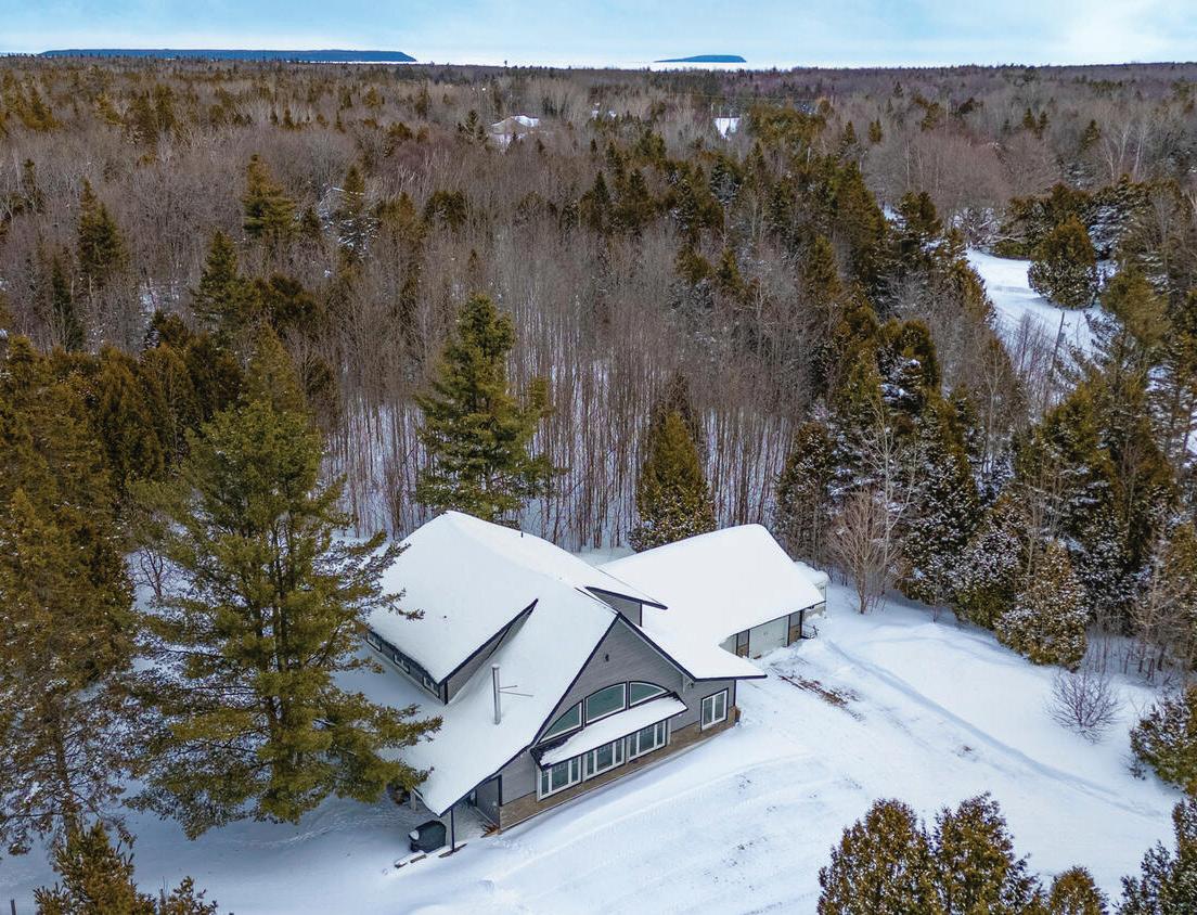 Enjoy sweeping views and a beautifully crafted home on 54 acres! This spacious 3,100 sq. ft. residence combines comfort, function, and style. Wander trails through wooded areas and a large meadow, just minutes from Tobermory and Bruce Peninsula National Park. Relax outdoors on one of three covered decks, under the pergola, or by the firepit. Inside features include a custom kitchen with granite counters, a main-floor primary suite with spa-like ensuite, hardwood floors, in-floor heating, A/C, and a 2-car garage. 4 Bedrooms / 2.5 bathrooms. A standout 40’ x 80’ workshop with hydro, concrete floor, and mezzanine offers endless potential for hobbies or a home-based business.