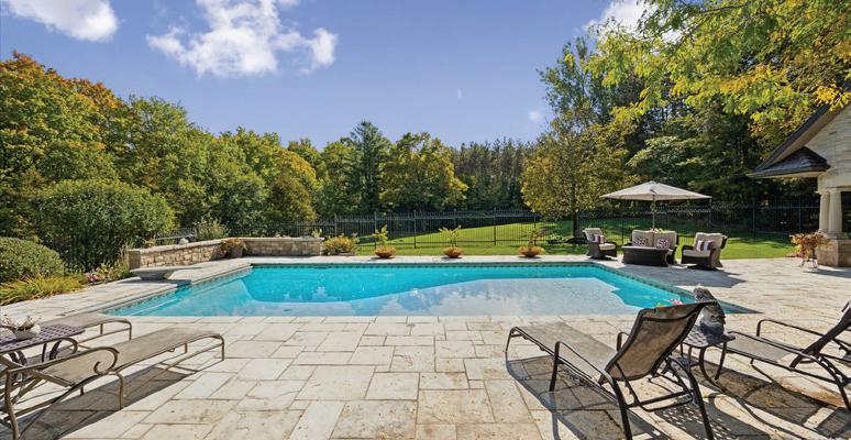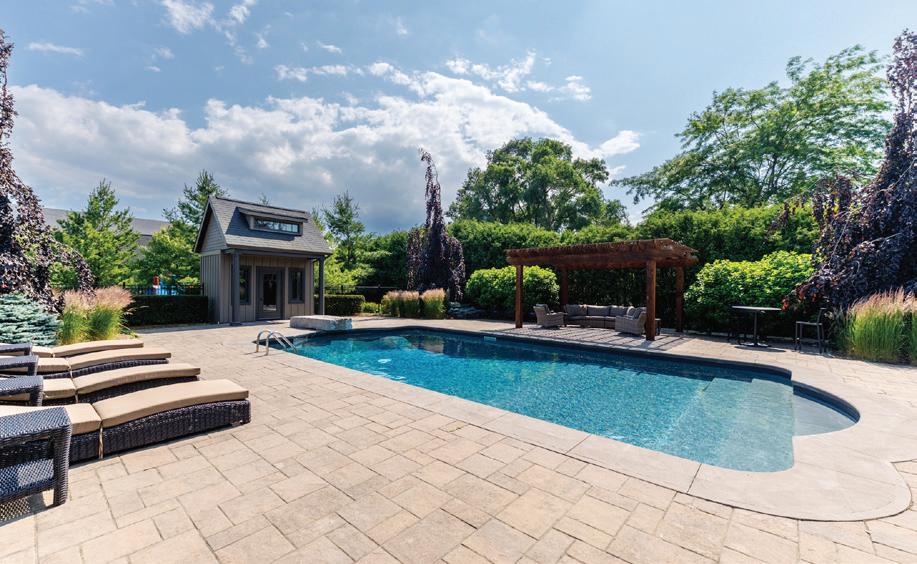 Private 1.01-acre Woodland Acres estate offering luxury finishes, a backyard oasis with pool, kitchen and bathroom, elegant interiors with a gourmet kitchen and multiple fireplaces, a walk-out lower level, and access to top schools and nearby amenities.