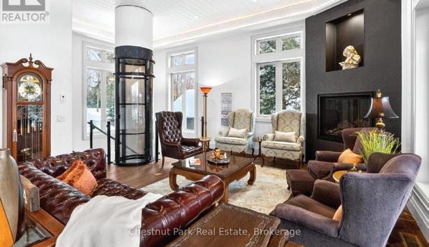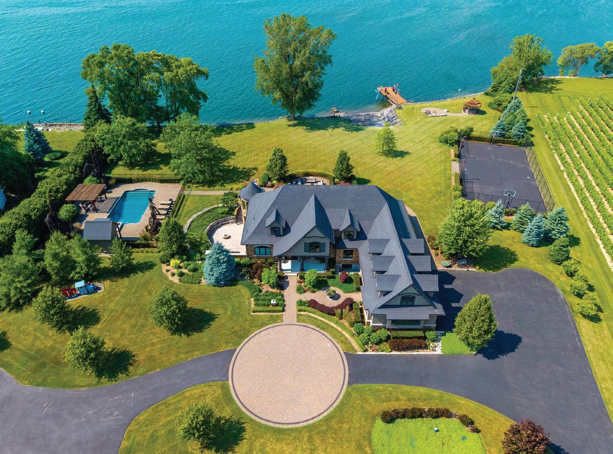 Poised along one of Southeast Oakville’s most coveted waterfront addresses, is this French château-inspired estate designed by renowned architect Gren Weis. Blending classical elegance with modern refinement, the home captures sweeping views of Lake Ontario while showcasing extensive millwork, radiant heated floors, and designer lighting in expansive principal rooms designed for both elegant entertaining and comfortable family living. From its grand living room to its sun-filled solarium, formal dining room, and a gourmet kitchen with a prep kitchen and adjoining family room, to its primary suite with a spa-inspired ensuite and dressing room, and its bright lower-level recreation room with a wet bar, fitness studio, and guest suite, you will enjoy the backdrop of magnificent waterfront views. With riparian rights, manicured gardens, and direct shoreline access, this remarkable estate represents the pinnacle of Southeast Oakville waterfront living.