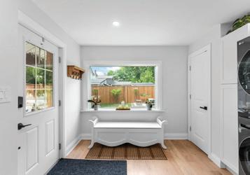 Enjoy the convenience of an attached garage with direct access to the home and a private, fully fenced backyard surrounded by mature trees—perfect for relaxing, gardening, or outdoor dining.