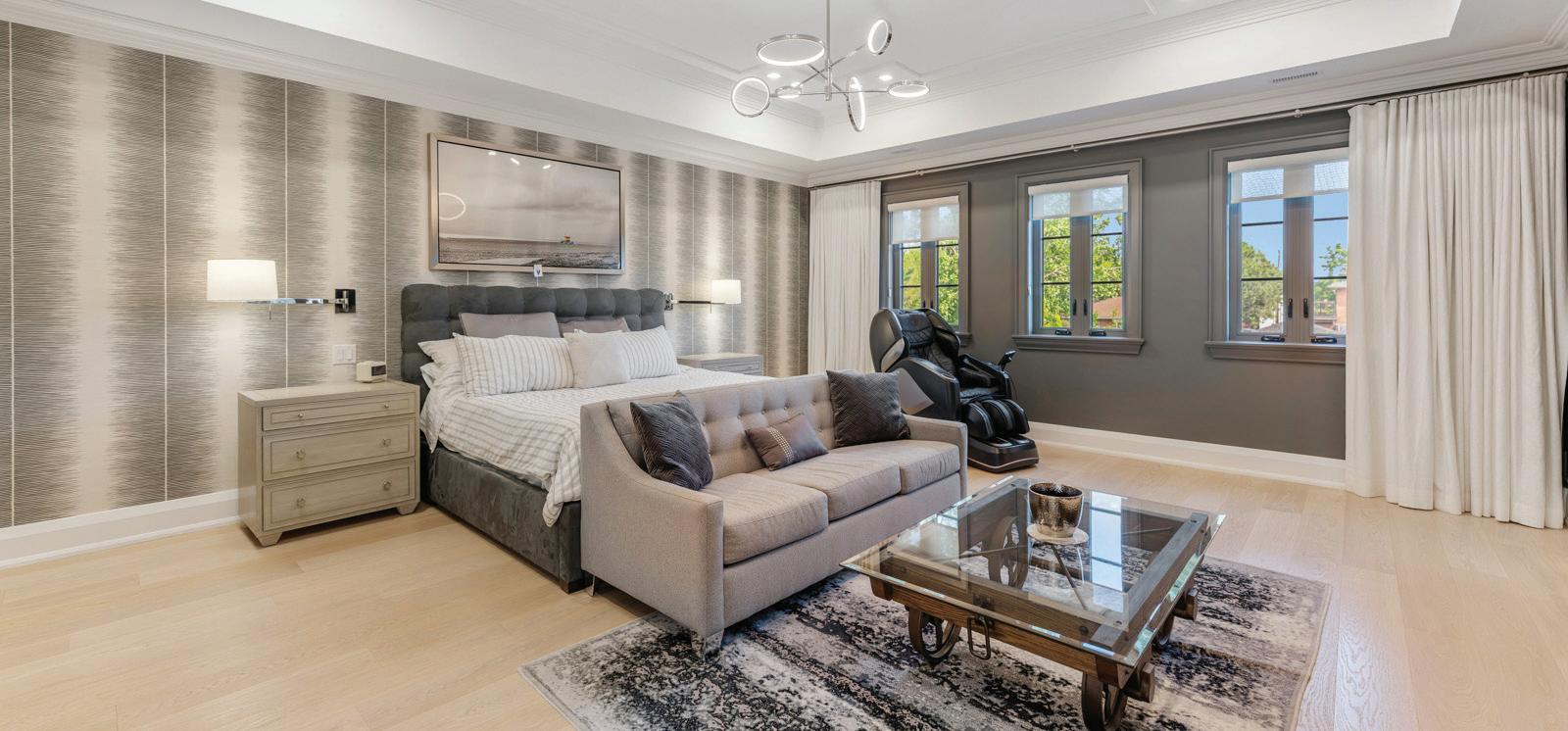 Upstairs, find four oversized bedrooms with spa-style ensuites all with heated floors, including a primary sanctuary with a heated-floor bathroom and luxe details throughout. A private office, mudroom, two laundry rooms, and smart home security add everyday convenience, while the lower level provides a full gym, recreation space, and additional bedrooms for family or guests.